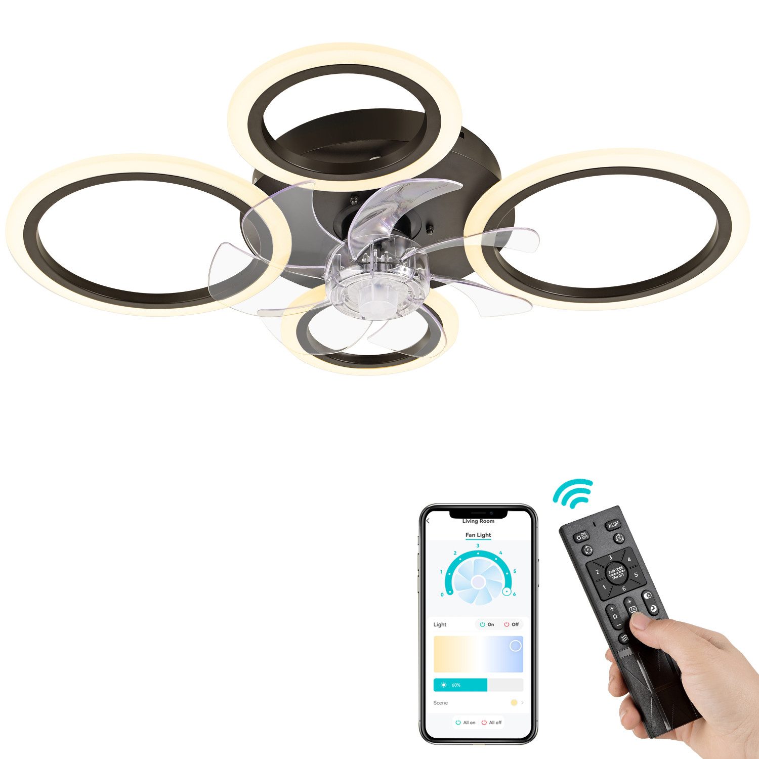2-in-1-Design: Kombiniert Beleuchtung und Luftzirkulation – Sommer kühlend, Winter warm verteilter Luft