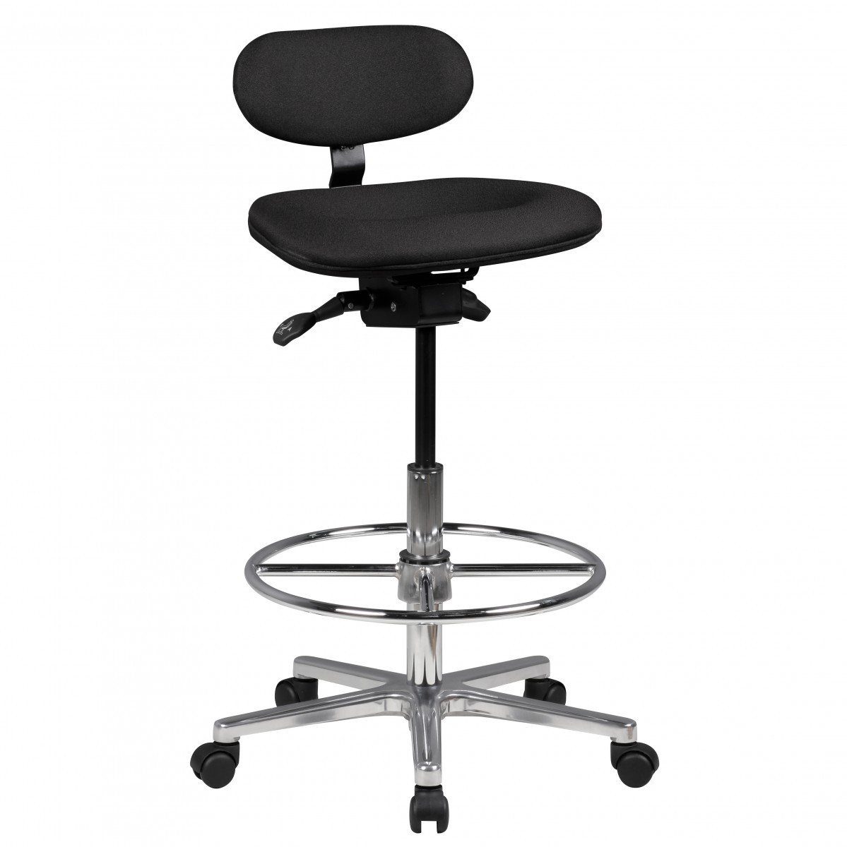 Um flexibel am Arbeitsplatz unterwegs zu sein, verfügt der Sitzhocker über fünf Rollen. An einem stabilen Aluminiumfußkreuz befestigt erreichst Du damit jeden Winkel des Arbeitszimmers. Zum optimalen Sitzkomfort trägt die höhenverstellbare Sitzfläche aus PU-Formschaum bei. Darüber hinaus sorgt sie durch ihre spezielle Beschaffenheit für die Entlastung des Beckenbereichs sowie der Lendenwirbel. Sowohl der Sitz als auch die Fußablage sind drehbar, was Du gerne als weiteres Highlight verbuchen kannst.