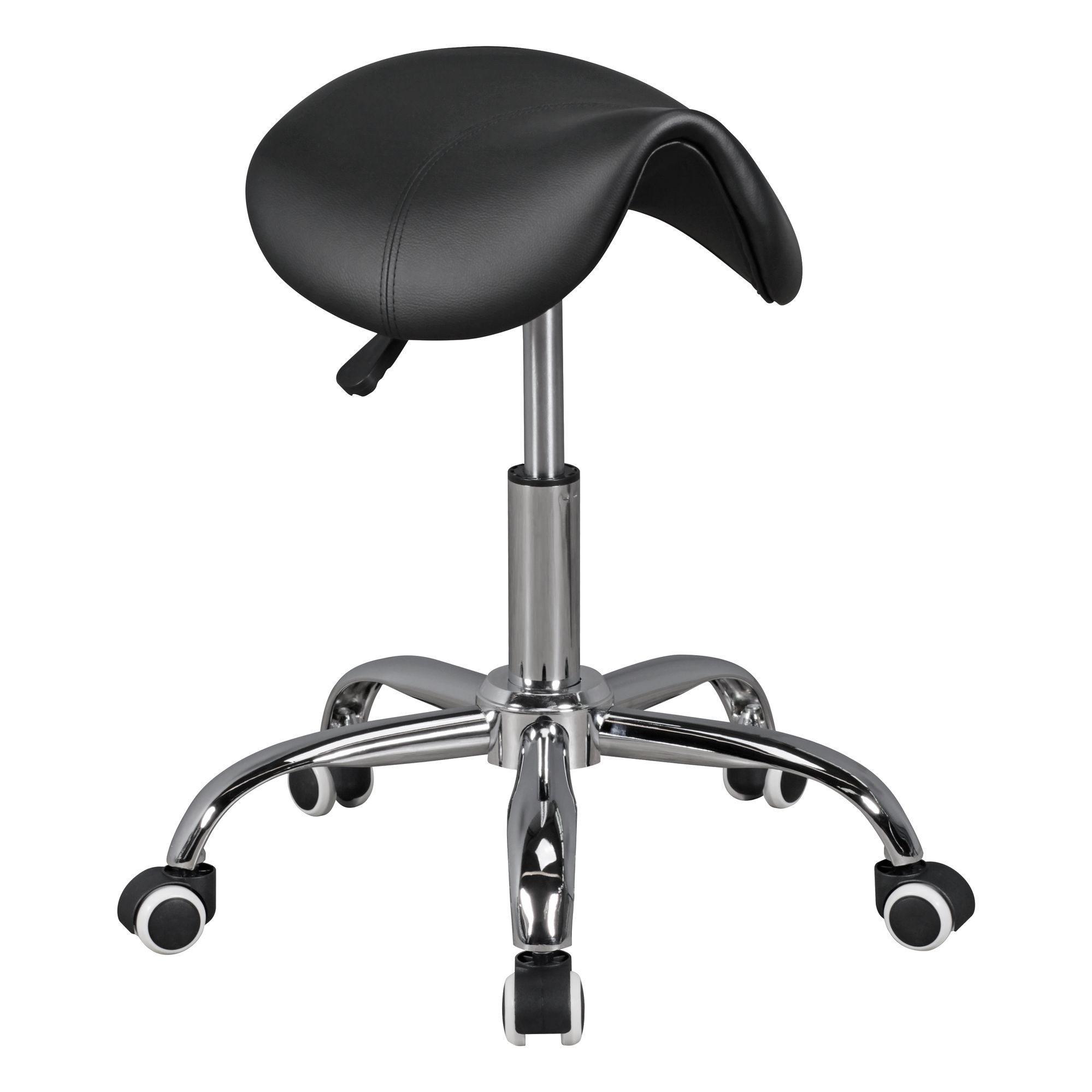Nicht nur optisch, auch funktionell erwerben Sie mit dem Sattelhocker ein hervorragendes Produkt. Die lässige Sattelform gewährleistet erstklassige Beinfreiheit und erleichtert das Aufstehen und Hinsetzen. Die mit Kunstleder überzogene Sitzfläche ist extrem bequem und überzeugt ebenfalls Benutzer, die die vegane Lebensweise präferieren. Damit größere und kleinere Personen den Arbeitshocker optimal nutzen können, lässt er sich in der Höhe verstellen. Mit fünf am Fußkreuz angebrachten Rollen und der 360 Grad drehbaren Sitzfläche sind Sie in Ihren Räumen jederzeit flexibel unterwegs.