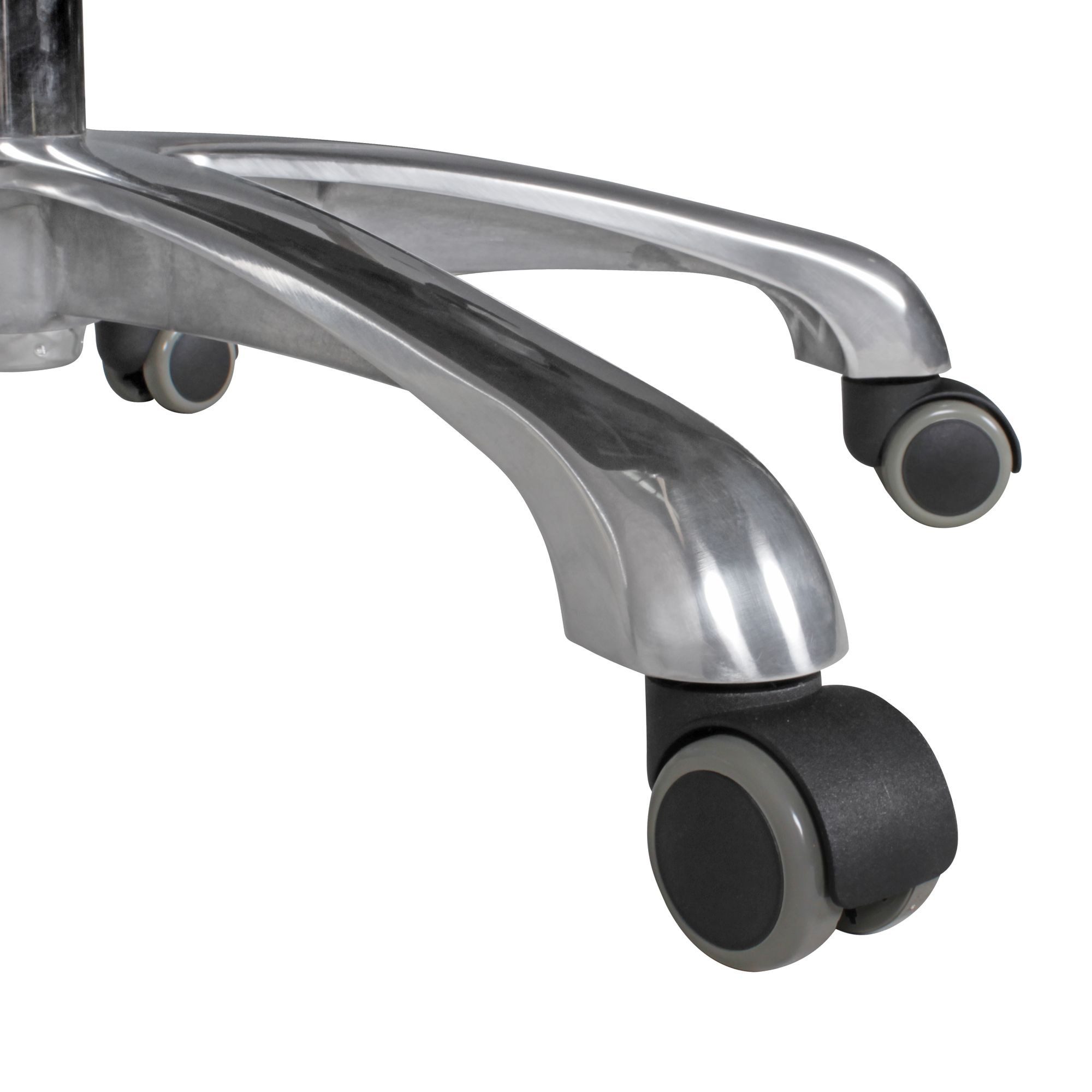 Standfestigkeit ist das A und O bei einem solchen Chefsessel. Hierfür sorgt das große Fußkreuz mit einem Durchmesser von 70 cm - dies bedeutet, dass der Stuhl nicht kippt oder gar umfällt. Ausgestattet ist der Schreibtischstuhl mit Hartboden-Doppellaufrollen, welche jedoch auch auf Teppich verwendet werden können.