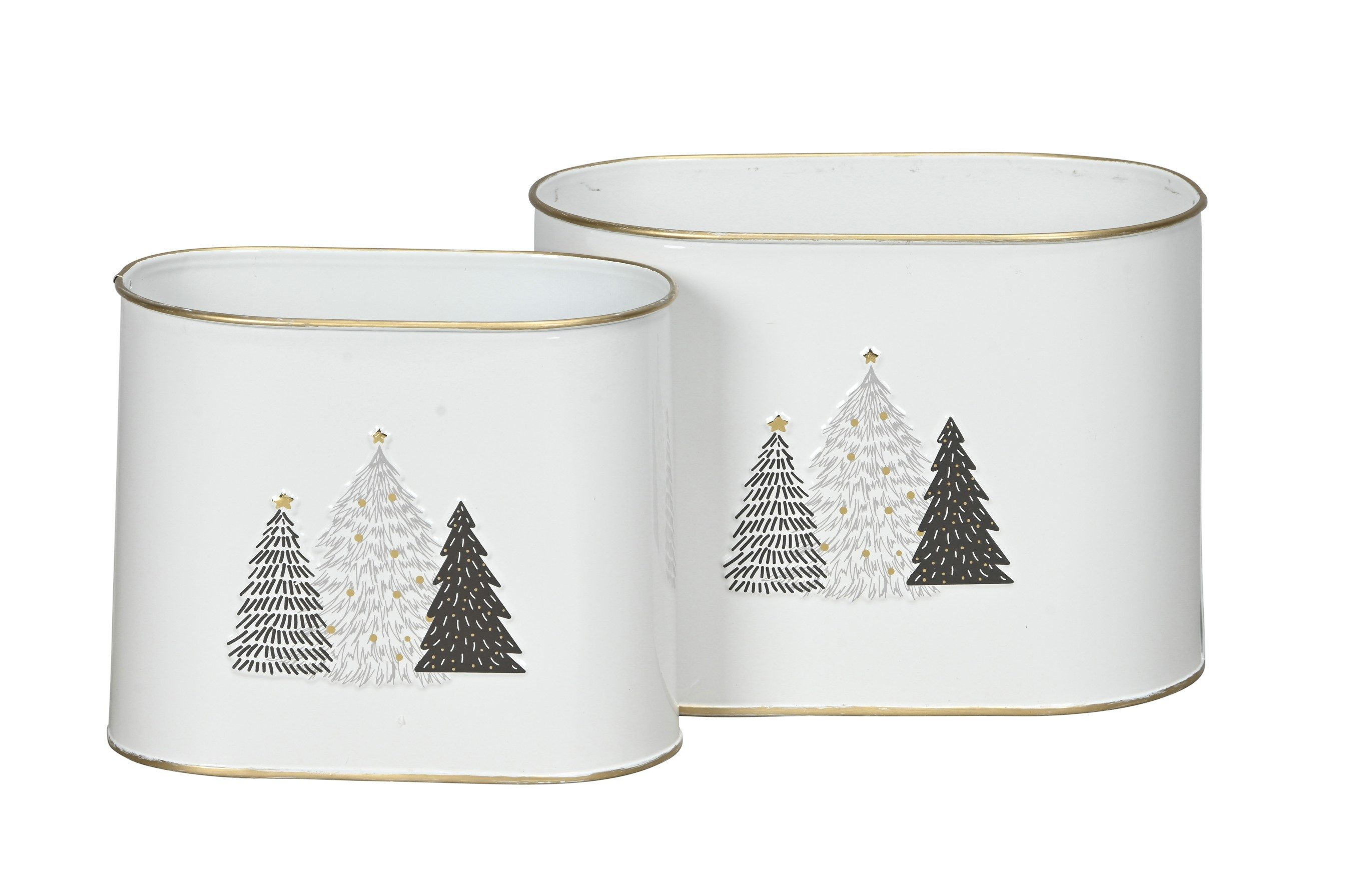 Die Töpfe mit Tannenbäumen verleiht eine Festliche und Skurrile Note und es zu einem entzückenden mittelpunkt ihrer Feiertagsdekoration, Charmanter Tanenbaum-Akzent: entzückende Tannen-Design verleiht einen hauch von naturinspiriertem und bringt leben und lebendigkeit in ihren Wohn- oder Arbeitsbereich, Blumentöpfe für Zimmerpflanzen Größe: klein ca. Ø16x9,5cm H13cm / mittel ca. Ø20x11cm H14,5cm H17cm Material: Metall Farbe: weiß-schwarz Lieferumfang 2 Stück in unterschiedlichen Größen