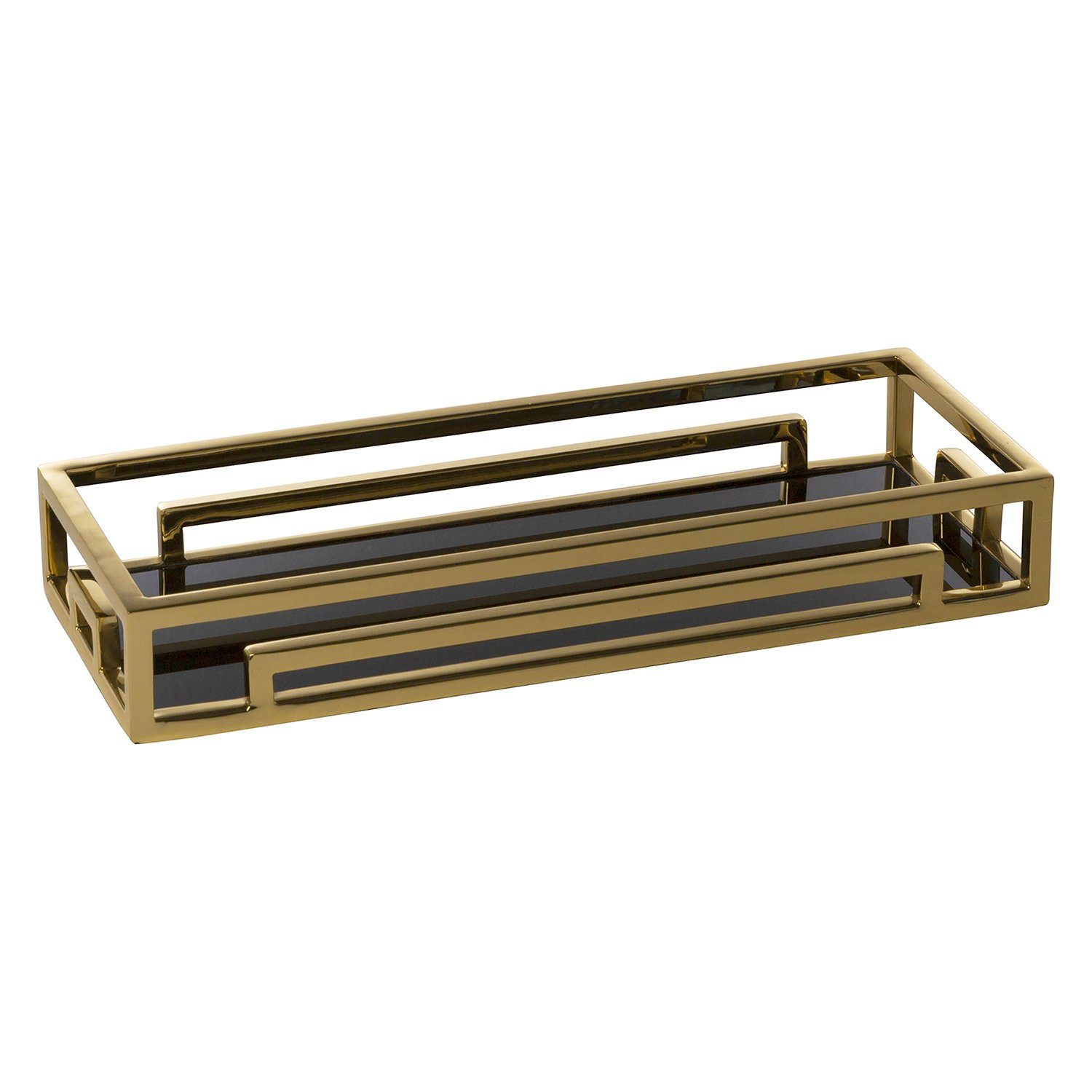 Das FINK Tablett MERANO ist ein elegantes Wohnaccessoire aus Edelstahl und Glas in goldfarben und schwarz, ideal als Serviertablett oder Dekotablett.
