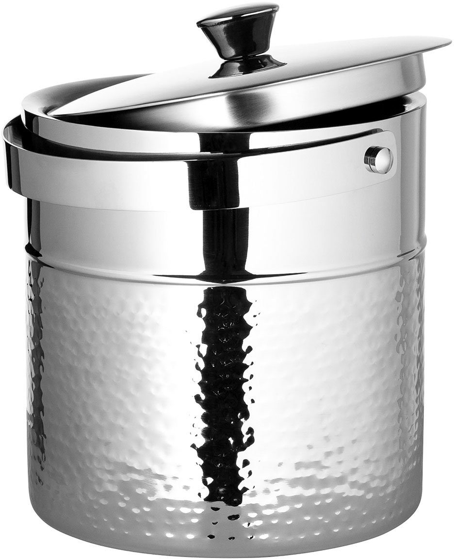 Wenn es um moderne Tischkultur geht, dürfen hochwertige Bar- und Cocktailaccessoires in keinem Haushalt fehlen. Der Eiswürfeleimer aus der Serie NASSAU ist aus lebensmittelechtem und pflegeleichtem Edelstahl gefertigt. Der schlichten Formensprache steht die kunstvolle Verzierung mit einer handgefertigten Hammerschlagstruktur gegenüber, die sowohl optisch als auch haptisch Akzente setzt.