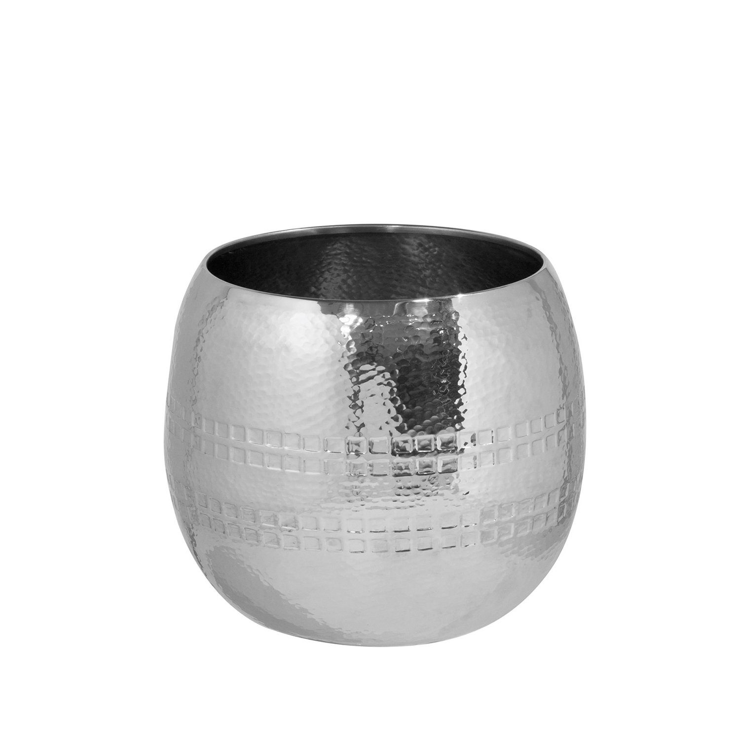 Der CARUS Pflanzentopf von FINK besticht durch seine gehämmerte Edelstahloberfläche in silberfarben und ist ideal für stilvolle Innen- und Außendekorationen.