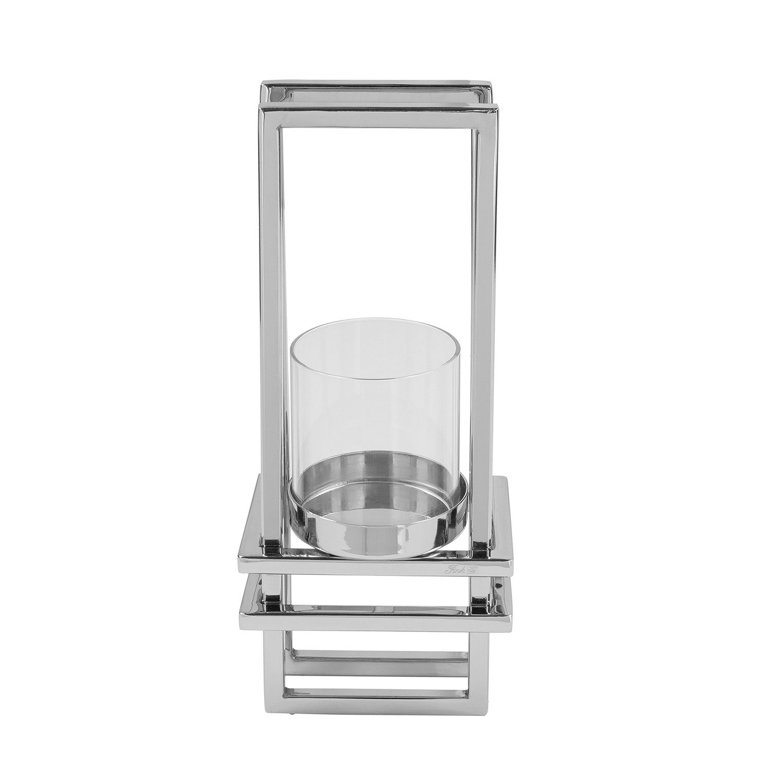 Der FINK DUALIS Kerzenständer ist die perfekte Tischdeko für Ihr Wohnzimmer. Dieser elegante Teelichthalter aus hochwertigem, vernickeltem Edelstahl besticht durch seine silberfarbene, glatte Oberfläche, die jedem Raum eine stilvolle Note verleiht. Mit einer Höhe von 31 cm, einer Breite von 13 cm und einer Tiefe von 9 cm fügt sich der DUALIS harmonisch in jede Deko ein und wird zum Blickfang Ihrer Wanddekoration. Das inklusive Glas sorgt für eine sichere und ansprechende Präsentation Ihrer Teelichter, während das moderne Design des Windlichts eine warme und einladende Atmosphäre schafft. Bitte beachten Sie, dass der Kerzenständer nicht outdoorgeeignet ist, was ihn ideal für den Einsatz im Innenbereich macht. Ob als Teil Ihrer Wohnzimmerdekoration oder als stilvolles Accessoire auf dem Tisch, der FINK DUALIS Kerzenständer vereint Funktionalität und Ästhetik auf beeindruckende Weise.