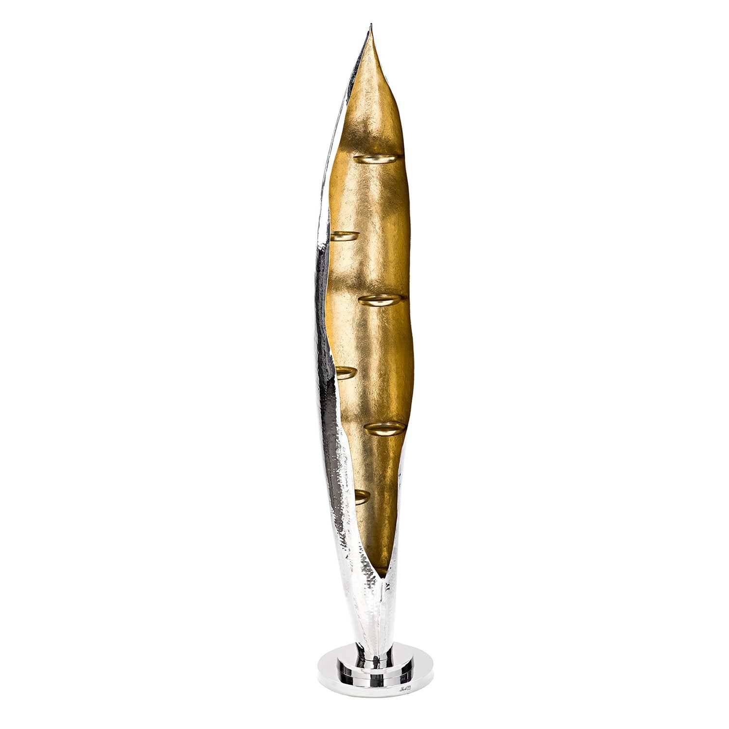 Mit einer beeindruckenden Höhe von 130 cm und einem Durchmesser von 22 cm setzt der silberfarbene Teelichthalter ein markantes Statement in jedem Raum.