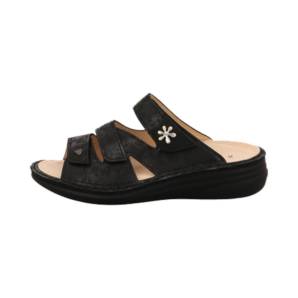 Sie suchen nach einem offenen Schuh mit hoher Alltagstauglichkeit, der Ihnen auch an warmen Tagen ein Wohlgefühl für Ihre Füße bietet? Ein Schuh mit allem Tragekomfort und einem besonders softem Fußbett? Oder Sie suchen nach einem offenen Bequem-Schuh, der auch mit maßgefertigten Einlagen zu tragen ist? Dann ist unser Modell "Grenada" die luftige Wohlfühl-Варианты für Ihre Füße. Mit einem schmuckvollen Ornament und seinen verstellbaren drei Klettverschlussriemen bietet dieses Modell von "FinnComfort" höchsten Tragekomfort. Was man nicht sieht, aber sofort fühlt, ist das besonders softe und anatomische Fußbett mit der Naturpassform von "FinnComfort", das für diesen Schuh ausgewählt wurde. Zusammen mit der kompletten Leder-Innenfütterung, die den Fuß schützt und seiner mittleren Absatzsprengung der rutschhemmenden PU-Sohle, lässt der "Grenada" ein gesundes Abrollen Ihres Fußes zu und wirkt zusätzlich dämpfend bei jedem Auftreten.