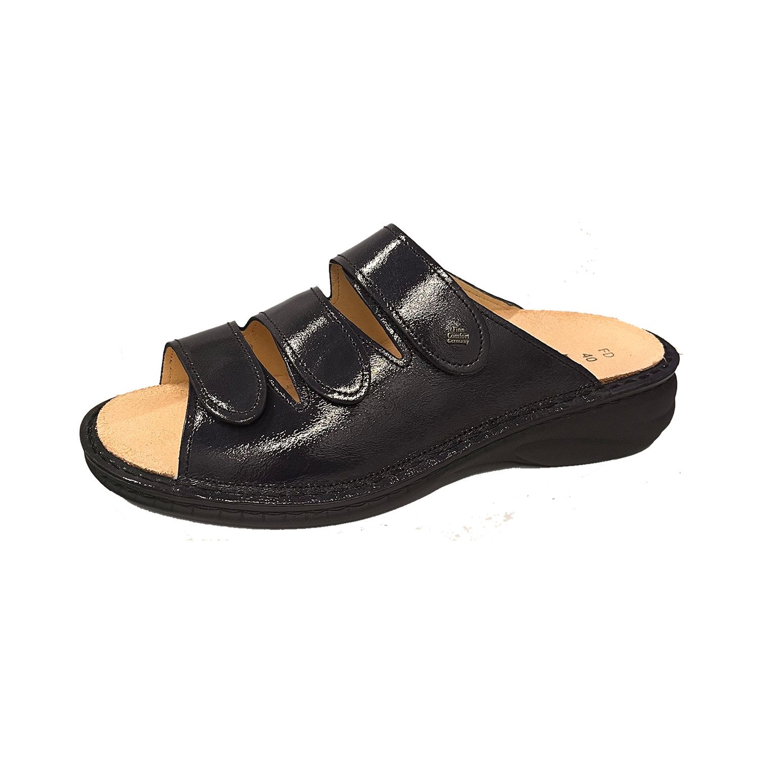 Das klassische Leder-Pantolettenmodell Hellas mit den zwei breiten Klettverschluss-Riemen und der hochwertigen Handnaht ist ein Bequem-Schuh von FinnComfort, der hoechsten Tragekomfort bietet. Die luftige Wohlfuehl-Варианты mit dem anatomisch geformten und bequemen Fussbett, der kompletten Leder-Innenfuetterung und der geringen Absatzsprengung wurde mit der Naturpassform von FinnComfort für normale und kraeftigere Fuesse entwickelt und kann auch mit Mass-Einlagen getragen werden.
