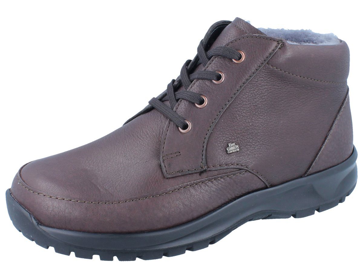 Das Herrenmodell Aibling ist ein warmer Schnürstiefel aus braun genarbtem Glattleder. Dieser über den Knöchel gehende Winterstiefel der Schuhmarke FinnComfort ist mit einem weichen Lammfellfutter ausgestattet.