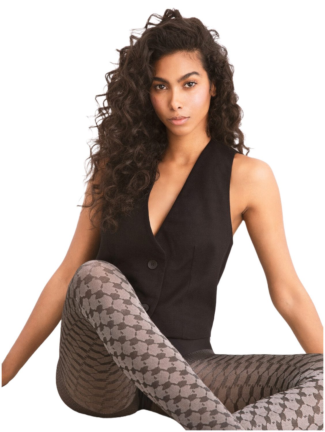 Gemusterte Strumpfhose mit komfortablen Flachnähten. Unsichtbar verstärkte Zehenpartie. Hergestellt in einer Flechttechnologie, die die Qualität und Haltbarkeit des Produkts erhöht.