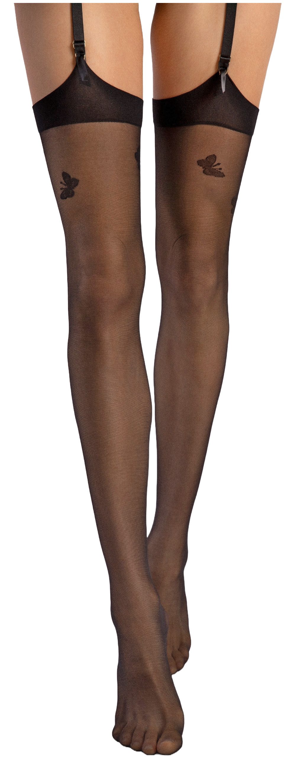 Verzaubern Sie mit diesen himmlischen Strapsstrümpfen, die zart mit einem Schmetterlingsdesign veredelt sind. Die Schmetterlingssymbolik, die für Transformation, Neubeginn sowie Glück und Liebe steht, verleiht diesen Strümpfen eine tiefe Bedeutung und eine ästhetische Schönheit.