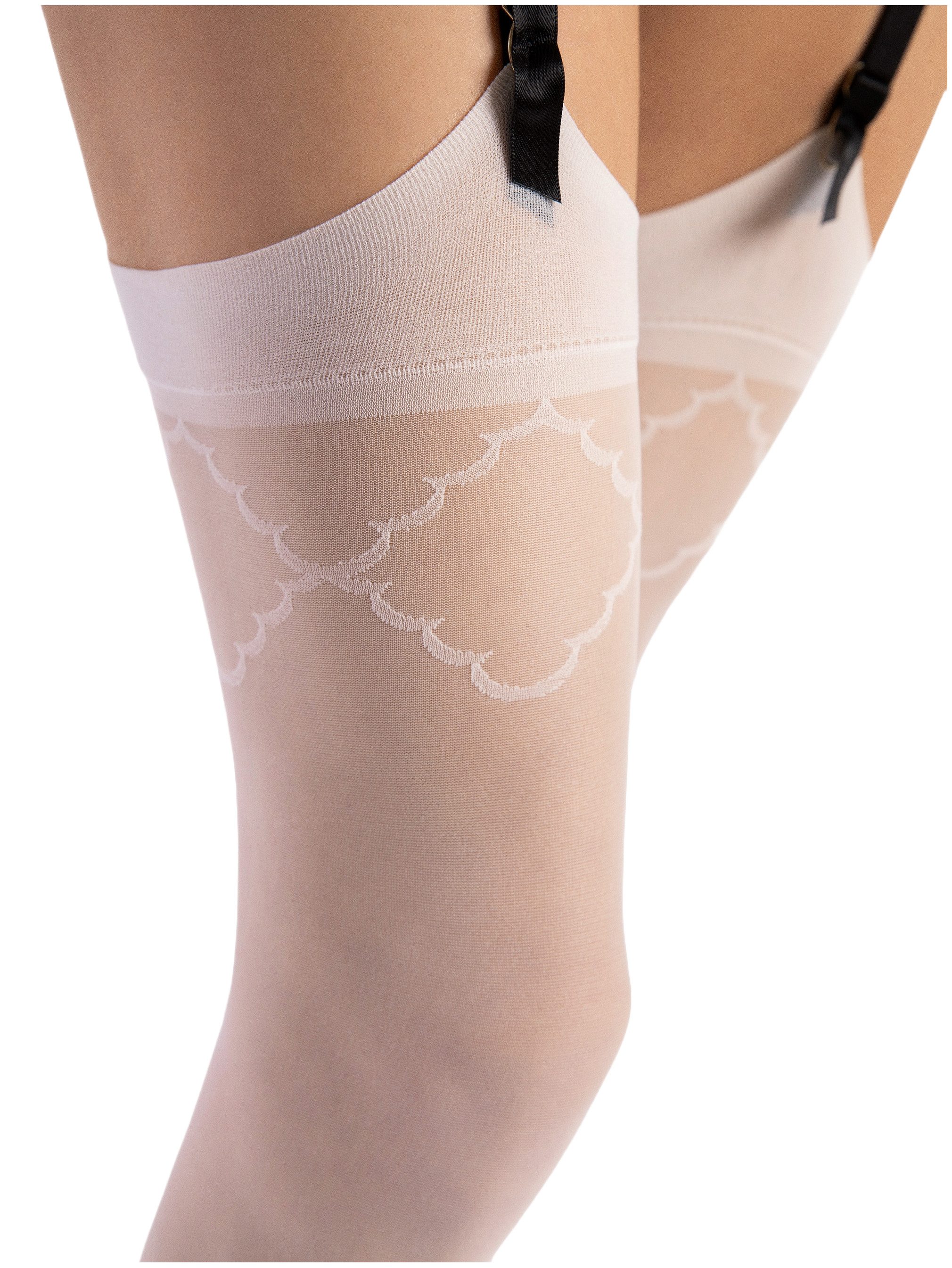 Mit einem eleganten Rautenmuster am Strumpfband, ideal für Liebhaber von Minimalismus und klaren Linien.