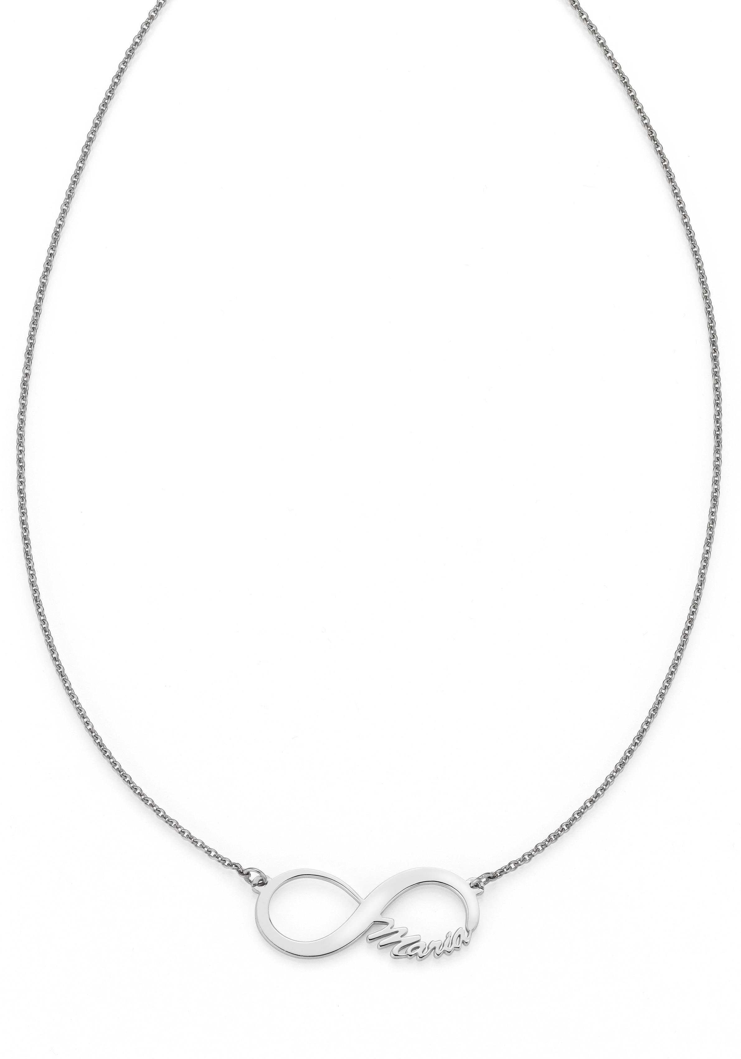 Ein wunderbares Geschenk für jemand Besonderen und ein fantastischer Zusatz zur eigenen Schmuckkollektion! Unvergleichlich elegant trägt die Kette den symbolträchtigen Anhänger „Infinity / Unendlichkeitsschleife“ und personalisiert diesen mit dem Namen oder das Wort deiner Wahl.