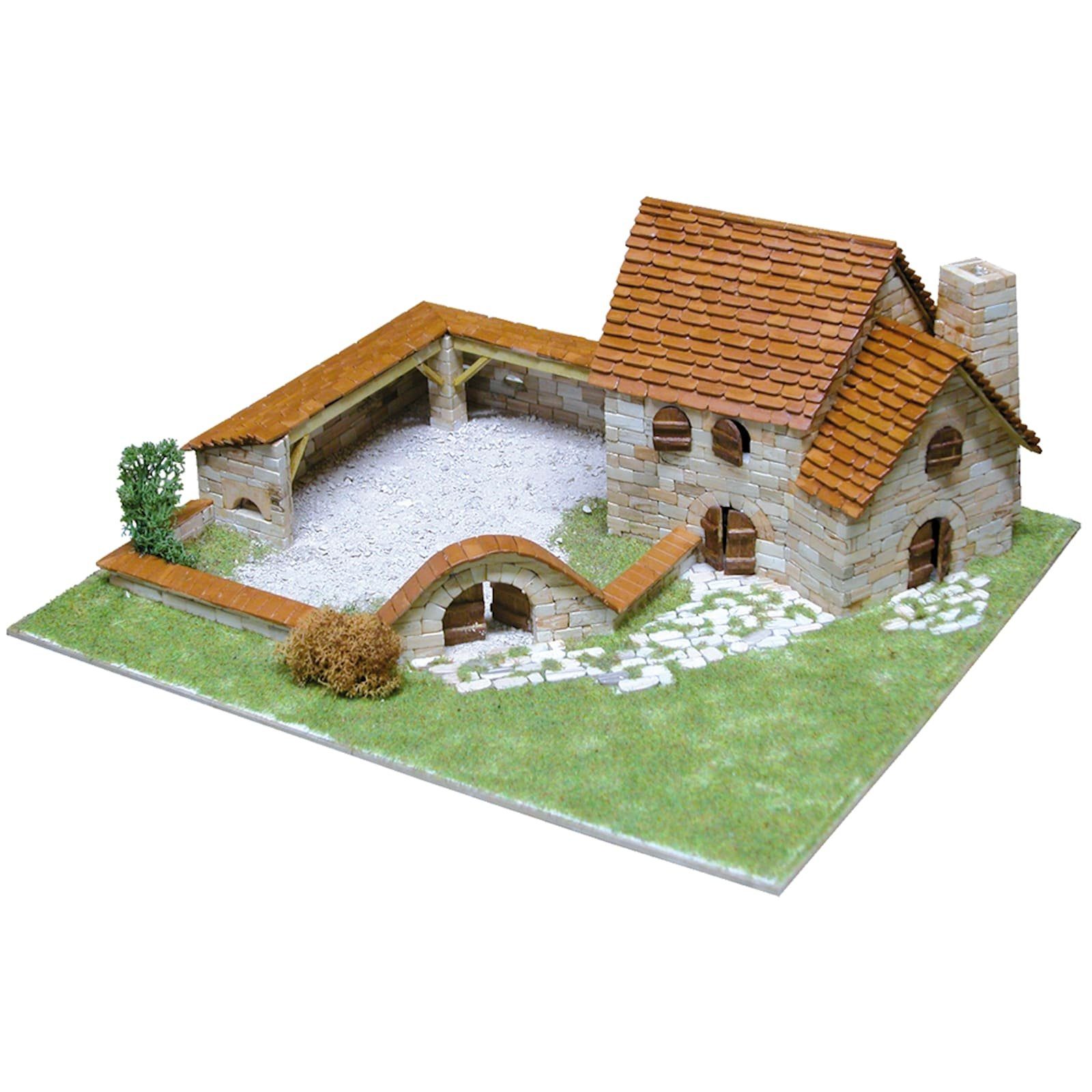 Für den Bau des Bauernhofes von aedes ars wird zunächst eine komplette Unterkonstruktion aus Karton erstellt, auf der dann Stein für Stein der Bauernhof inklusive seines großen Innenhofes errichtet wird. Im Anschluss werden Details, wie die Fenster und Dächer und Zäune, hinzugefügt. Abschließend wird die Umgebung mit Gräsern und Gebüsch gestaltet. Der Baukasten des Bauernhofes ist mit allen notwendigen Materialien ausgestattet. Dazu gehören z. B. die Karton-Struktur mit allen keramischen Bauteilen, sowie Leim und einer umfassenden Bauanleitung.