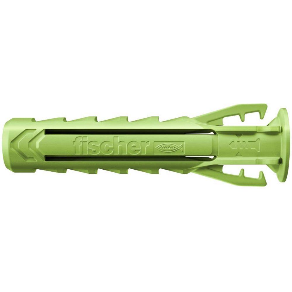 Der fischer Spreizdübel SX Plus Green wird aus mindestens 50% nachwachsenden Rohstoffen hergestellt. Aufgrund seiner 4-fach Spreizung ist er der Spezialist für Vollbaustoffe wie Beton, Kalksandstein und Mauerwerk. Die speziellen Fixierflügel sorgen für eine Vorfixierung der Schraube, wodurch diese bei Überkopf Anwendungen nicht zusätzlich festgehalten werden muss. Diese Schraubenfixierung ermöglicht dem Anwender einen flexiblen und komfortablen Setzvorgang. Der flexible Dübelrand verhindert zudem ein Tieferrutschen des Dübels in das Bohrloch für eine sichere Montage