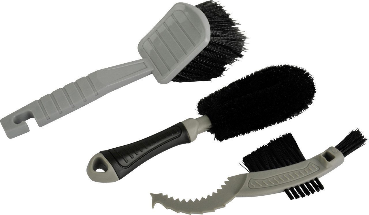 Produktdetails: Speziell für die Fahrradpflege geeignet | Vielseitige Anwendungsmöglichkeiten | Ergonomisches Design | Maße: 34 x 22 x 9 cm (H x B x T) | Farbe: schwarz, grau | Lieferumfang: Große Waschbürste, Felgenbürste, Zahnkranzbürste |