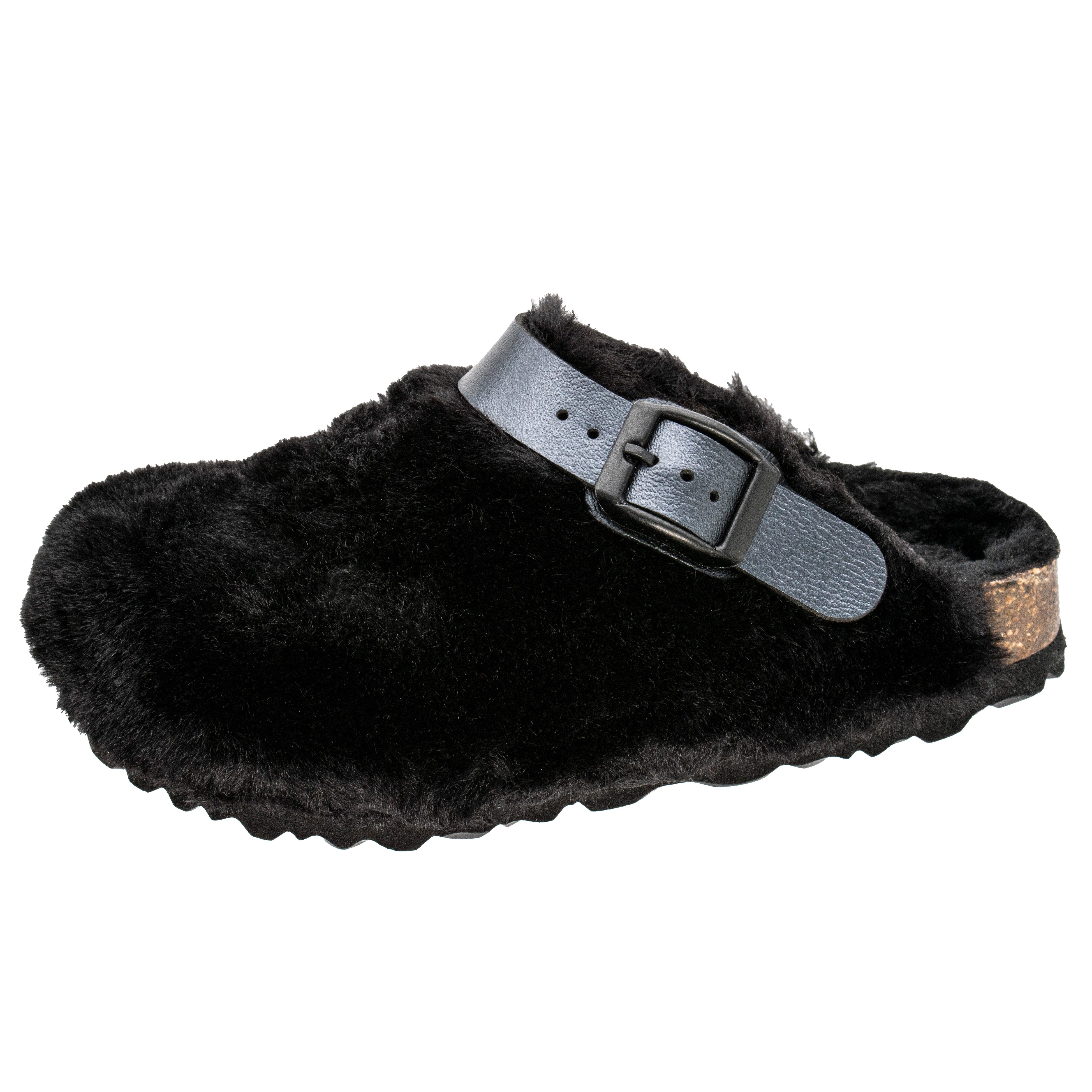 Besondere Merkmale | aus Plüsch, mit gepolstertem Fußbett, Riemen nach hinten verstellbar |