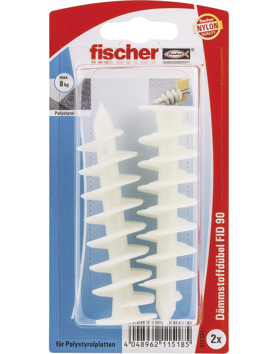 Der Fischer Dämmstoffdübel FID ist ein Dübel, um leichte Anbauteile in verputzten und unverputzten Dämmstoffplatten aus Polystyrol und aus Polyurethan zu befestigen. Dazu wird der Fischer FID mit der Hand oder einem Akku-Schrauber gesetzt. Die spezielle Gewindespirale schneidet sich dabei formschlüssig in die Dämmplatte. Die Anbauteile wie Hausnummern, Bewegungsmelder oder Hinweisschilder können mit einer 4,5-mm-Schraube befestigt werden.