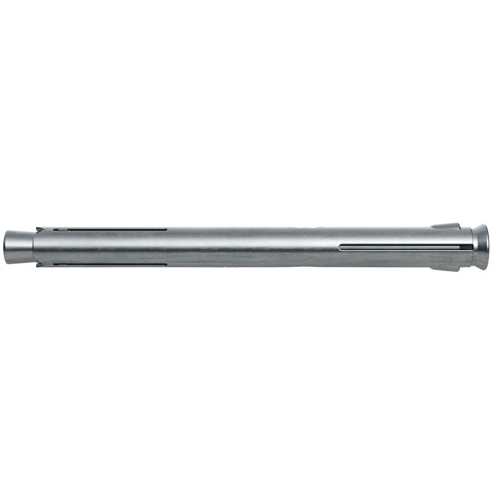 Der Fischer Metallrahmendübel F 10 M ist ein Spezialdübel zur spannungsfreien Abstandsmontage von Fenster- und Türrahmen. Dieser besteht aus einer Metallhülse und einer Senkkopfschraube aus galvanisch verzinktem Stahl. Der F 10 M wird zeitsparend in der Durchsteckmontage gesetzt. Beim Anziehen der Schraube wird der Konus in die Dübelhülse gezogen, spreizt auf und verspannt sich gegen die Bohrlochwand. Dadurch wird der Fensterrahmen spannungsfrei in Voll- und Lochbaustoffen befestigt. Der Fischer Metallrahmendübel F 10 M ist neben der Befestigung von Fenster- und Türrahmen auch für Kanthölzer geeignet.