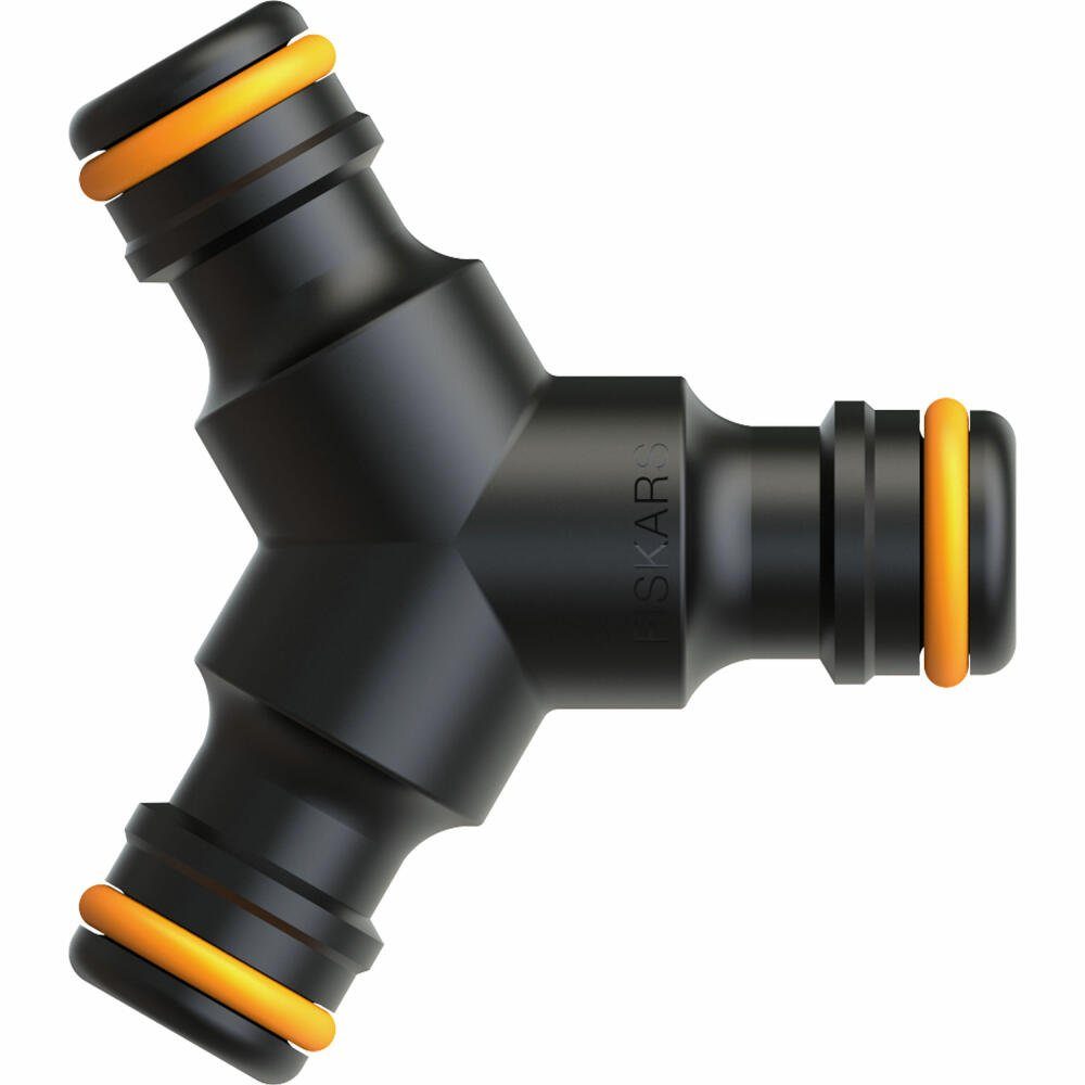 Der Dreiweganschluss ermöglicht das Verbinden von Schläuchen mit unterschiedlichen Durchmessern (9 mm, 13-15 mm und 19 mm) und ist mit allen Typen von Schlauchverbindern kompatibel. So lässt sich ganz einfach die Wasserzufuhr in 2 separate Schläuche aufteilen.