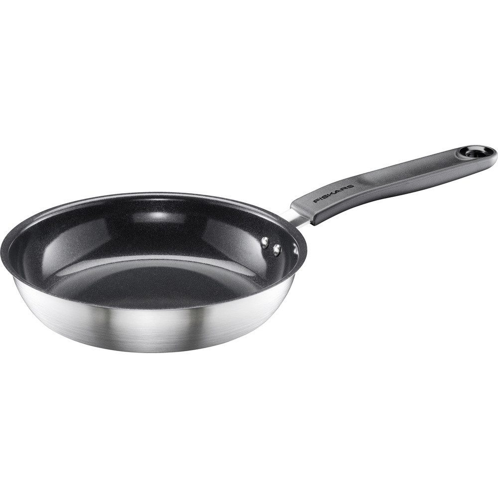 Die praktische Fiskars Functional Form Bratpfanne ist ideal für die tägliche Küche, vor allem bei begrenztem Platzangebot oder zum Braten kleinerer Portionen von Eiern, Gemüse und Fisch. Der 20 cm große Pfannenkörper besteht aus langlebigem, zu 90 % recyceltem Edelstahl und kann auf allen Herdarten, einschließlich Induktion, verwendet werden. Die Pfanne ist mit einer kunststofffreien, antihaftbeschichteten Ceratec™-Keramikbeschichtung ausgestattet, die leicht zu reinigen und spülmaschinenfest ist. Die Bratpfannen von Functional Form verfügen über einen 3-Schicht-Boden für optimales Erhitzen und gleichmäßiges Anbraten sowie einen Griff, der kühl bleibt und somit bequem zu greifen ist. Die Pfanne hat eine maximale Brattemperatur von 270 ºC und ist bis zu 150 ºC backofenfest für Rezepte, bei denen die Pfanne in den Ofen geschoben werden muss, was einen nahtlosen Garprozess ermöglicht. Hergestellt in Finnland in der nach ISO 14001 zertifizierten Fabrik von Fiskars