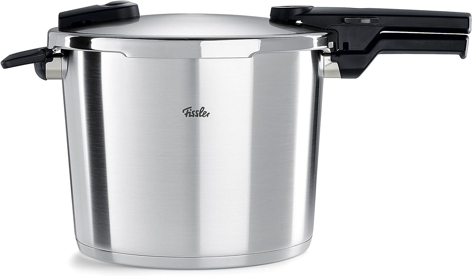 Der Fissler Vitaquick® Premium bietet alles für den Einstieg in die Welt des gesunden und geschmackvollen Schnellkochens – „Made in Germany“. Wie alle Fissler Schnellkochtöpfe verkürzt der Vitaquick® die Garzeit um bis zu 70% verglichen mit einem herkömmlichen Kochtopf, spart dabei bis zu 50% Energie, schont Vitamine und bewahrt Aromen. Zwei Kochstufen ermöglichen ein besonders schonendes oder sehr schnelles Garen von Gemüse, Hülsenfrüchten, Fisch oder Fleisch. Эко-товар hergestellt in Hoppstädten-Weiersbach, Rheinland-Pfalz aus bis zu 90% recyceltem Edelstahl 18/10, entdecken Sie mit dem Vitaquick® Premium sicher und leicht die Welt des Schnellkochens.