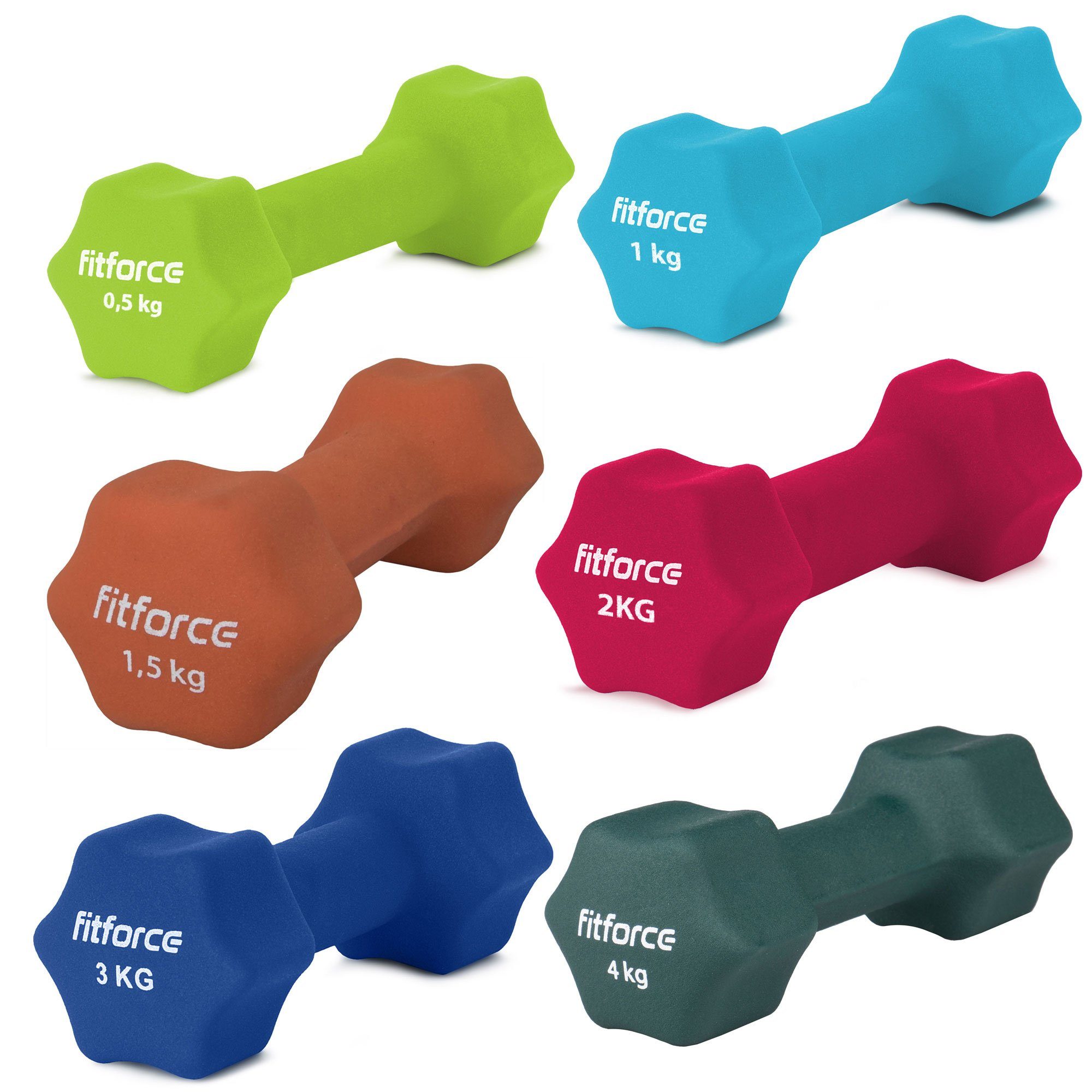 Die Hanteln sind in verschiedenen Gewichtsklassen von 0,5kg bis 5kg in verschiedenen Farben erhältlich.