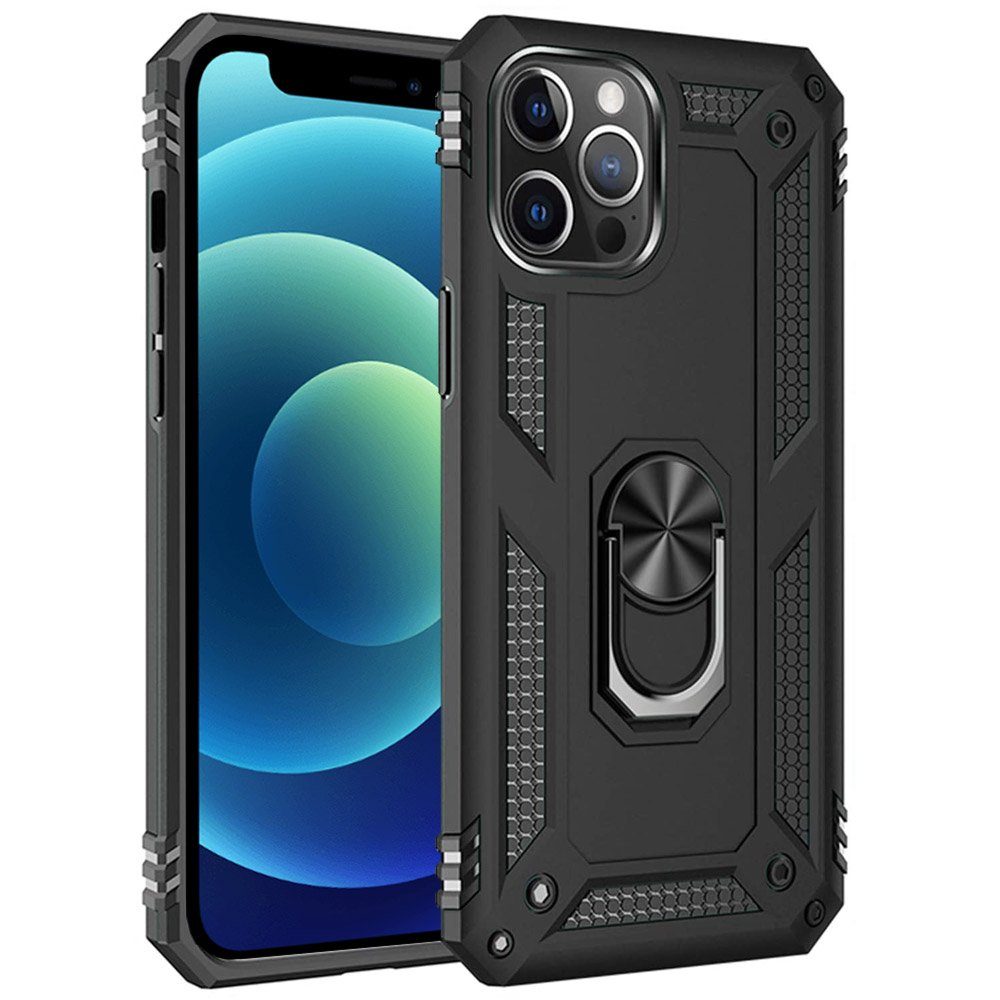 HOHE QUALITÄT: Sehr hochwertige, robuste Double Layer Handyhülle für Apple iPhone 12 Mini mit schicker Optik sowie 360° drehbaren Ringhalter