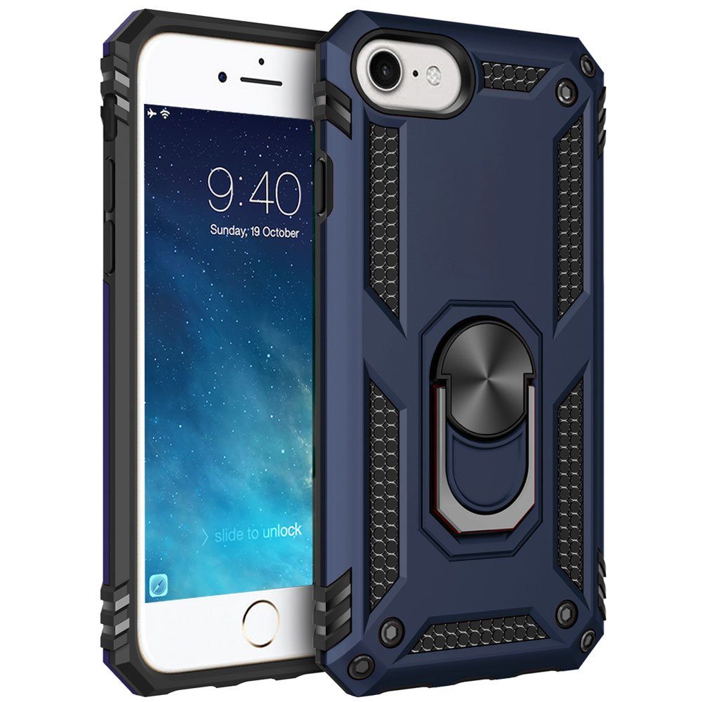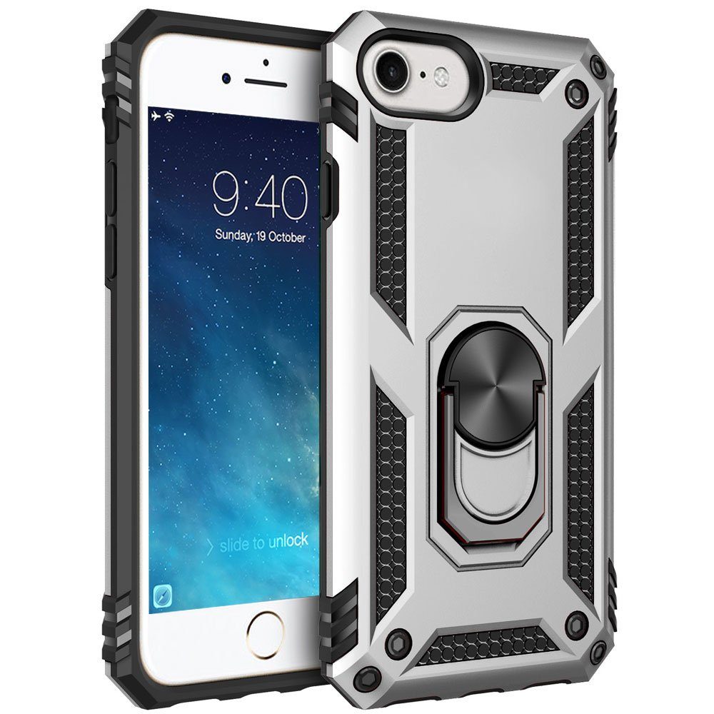 HOHE QUALITÄT: Sehr hochwertige, robuste Double Layer Handyhülle für Apple iPhone 7 mit schicker Optik sowie 360° drehbaren Ringhalter