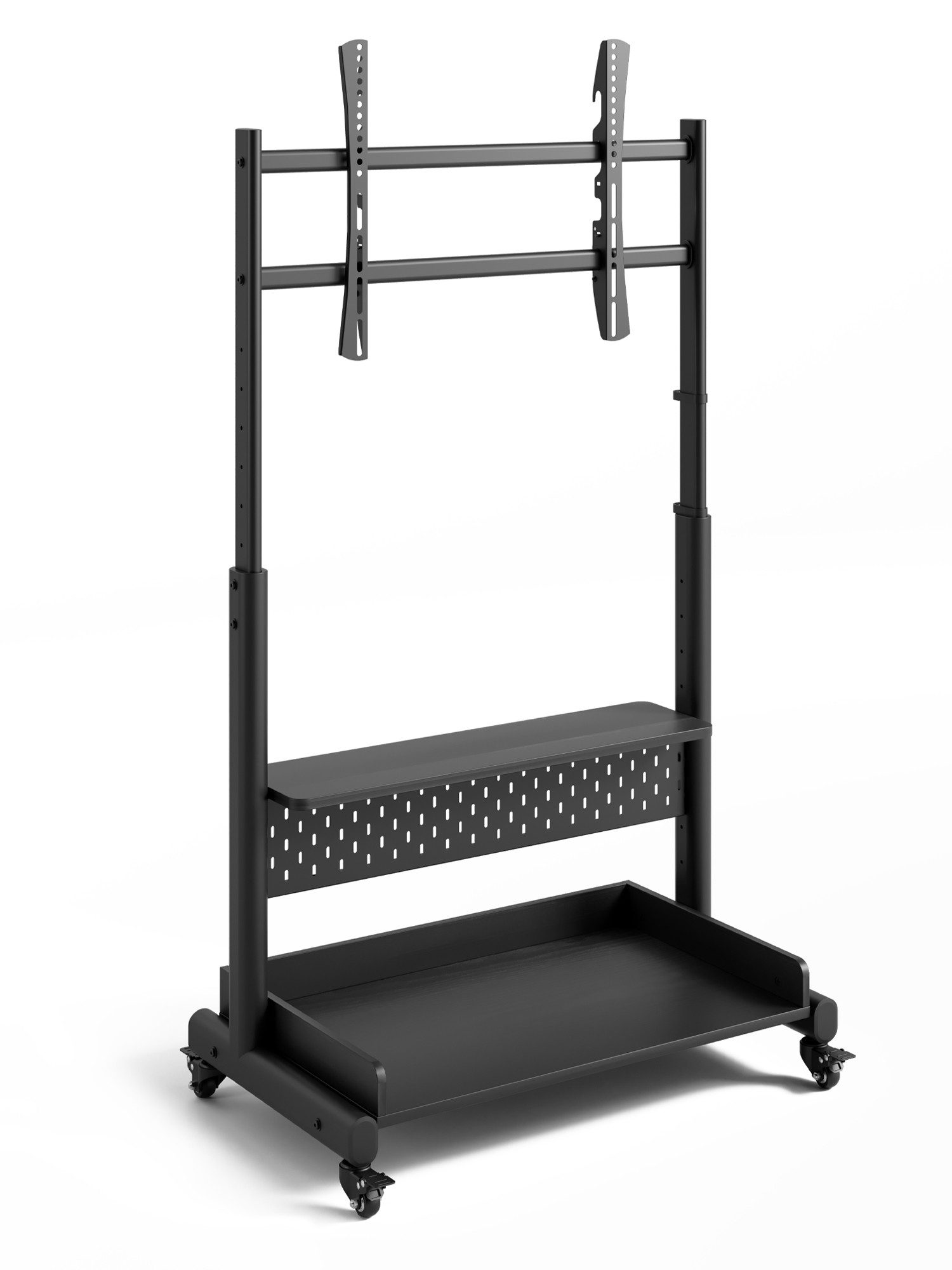Mehr DetailsTV-Sicherheitssperre, um das Herunterfallen des Fernsehers zu verhindern.Das Kabelmanagement sorgt dafür, dass alle Kabeln geordnet und Stolperfallen vermieden werden.Lagerregal und Lochplatte sind auch höhenverstellbar.