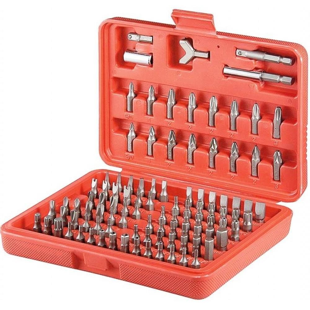 Das umfangreiche und vielseitige Bit-Set bietet Ihnen eine umfassende Auswahl an Bits für jede Anwendung. Mit insgesamt über hundert Teilen inklusive einem Magnet Bithalter und verschiedenen Adaptern sind Sie bestens ausgestattet für alle Schraubarbeiten. Dieses Set enthält eine Vielzahl von Kreuzschlitz-, Pozidrive-, Vierkant-, TORQ-, Flachschlitz-, Spanner-, Keilprofi-, TriWing-, Klammer-, Innen-Sechskant-, Vielzahn- und Sechskant-Bits.