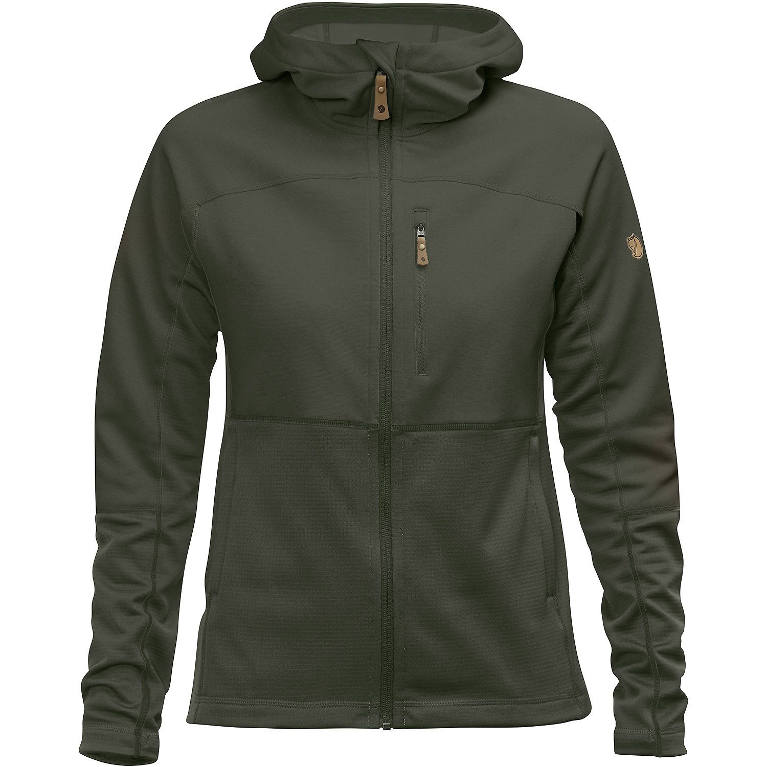 Abisko Trail Fleece W - Ein komfortabler Fjällräven Hoodie aus zwei verschiedenen Fleecematerialien, die den Oberkörper angenehm warm halten, aber dennoch ein geringes Gewicht und Packvolumen gewährleisten. Ideal als schnell trocknende, feuchtigkeitsableitende Zwischenschicht auf Tagestouren oder an kühlen Sommerabenden.