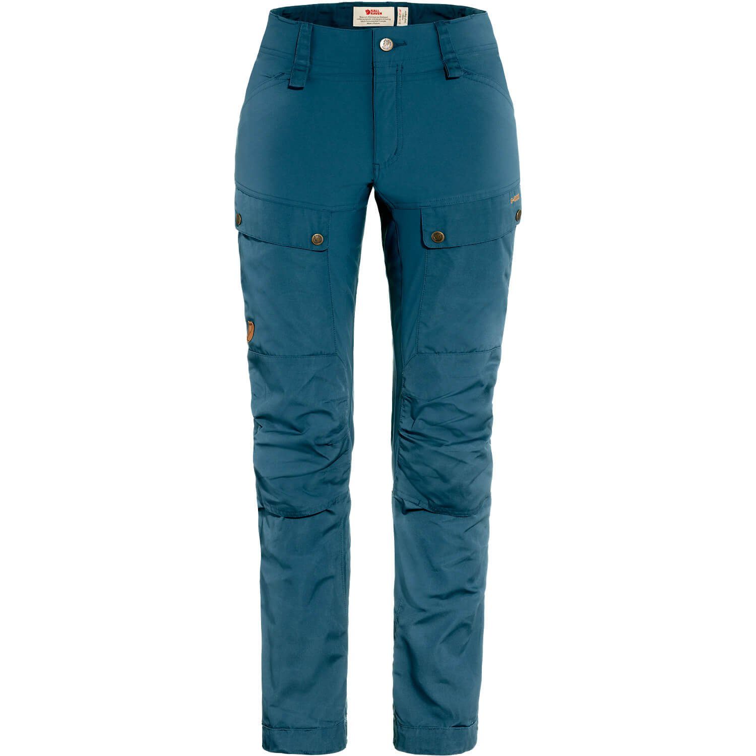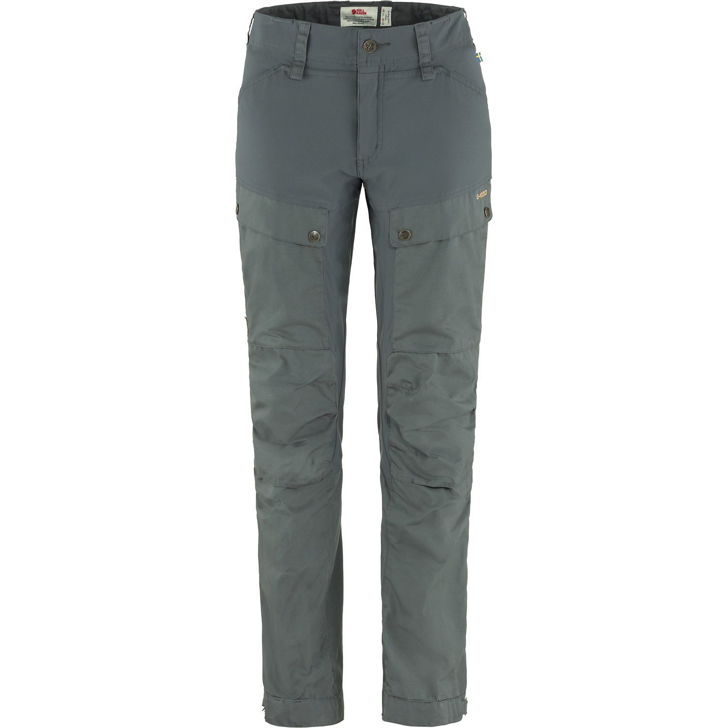 Preisgekrönte Trekkinghose von Fjällräven mit Curved Fit und einer hohen, akzentuierten Taille - die Damen Keb Trousers Curved. Aus Stretchmaterial und G-1000 Eco, mit erhöhter Performance, Passform und Langlebigkeit. Es gibt außerdem eine neue Befestigungsmöglichkeit für Hosenträger und ein neues Design des Beinabschlusses, das leichter anzupassen und zu reparieren ist. Wie bisher hat die Hose klassische, große Taschen und Belüftungsöffnungen an den Oberschenkeln und Waden. Ein gut sitzender, langlebiger Klassiker für maximale Bewegungsfreiheit in den Bergen.