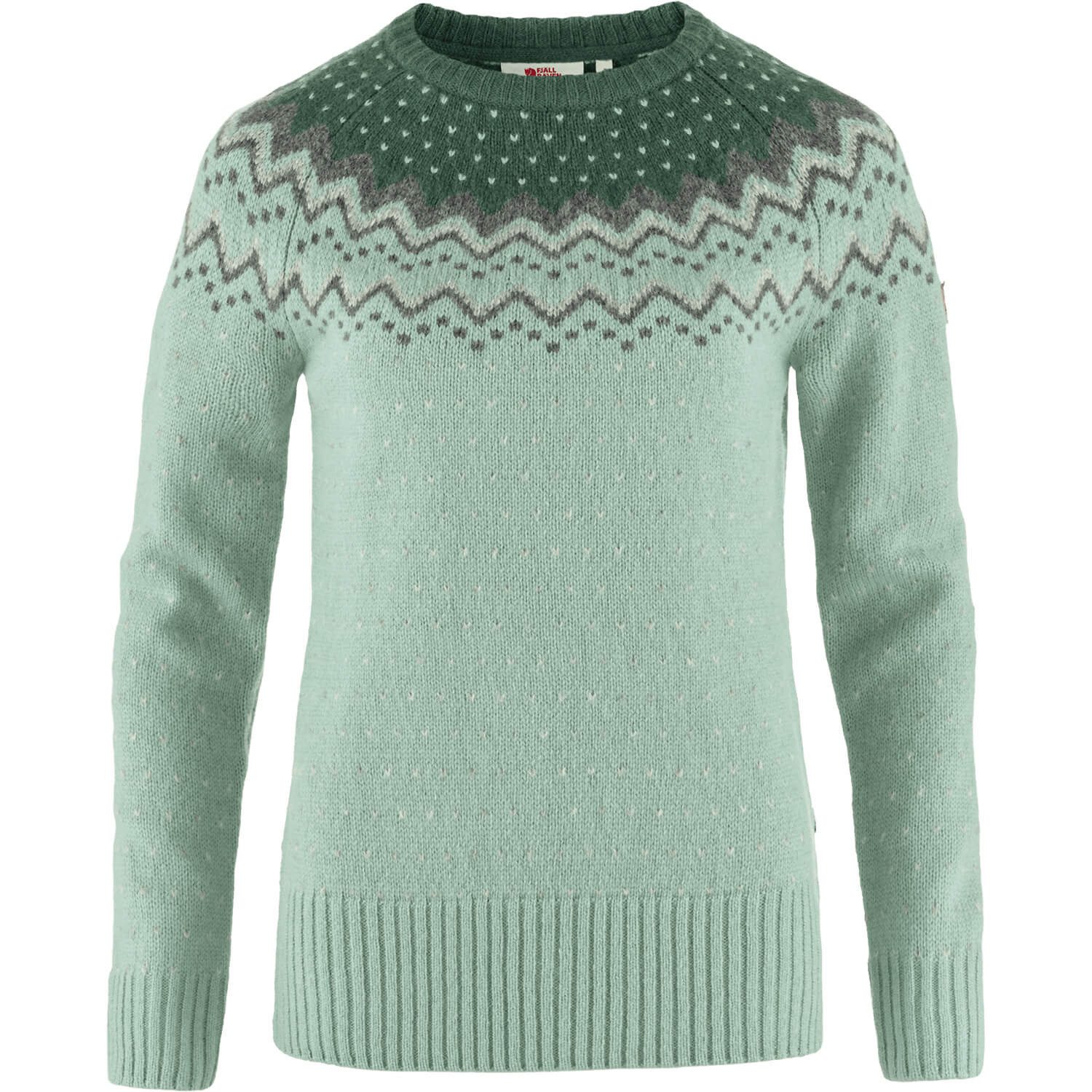 Damen Övik Knit Sweater - Ein Wohlfühlpullover von Fjällräven aus weicher, warmer Wolle, der sowohl im Alltag als auch bei Outdoor-Touren überzeugt. Das wunderschön gemusterte Modell bietet ausgezeichnete Funktionalität, da die Wolle die Feuchtigkeit aus der darunter getragenen Bekleidungsschicht ableitet und zu den wenigen Fasern gehört, die auch im feuchten Zustand noch angenehm wärmen. Kann als isolierende Schicht unter der Hardshelljacke oder an wärmeren Tagen auch nur mit einer Daunenweste getragen werden.