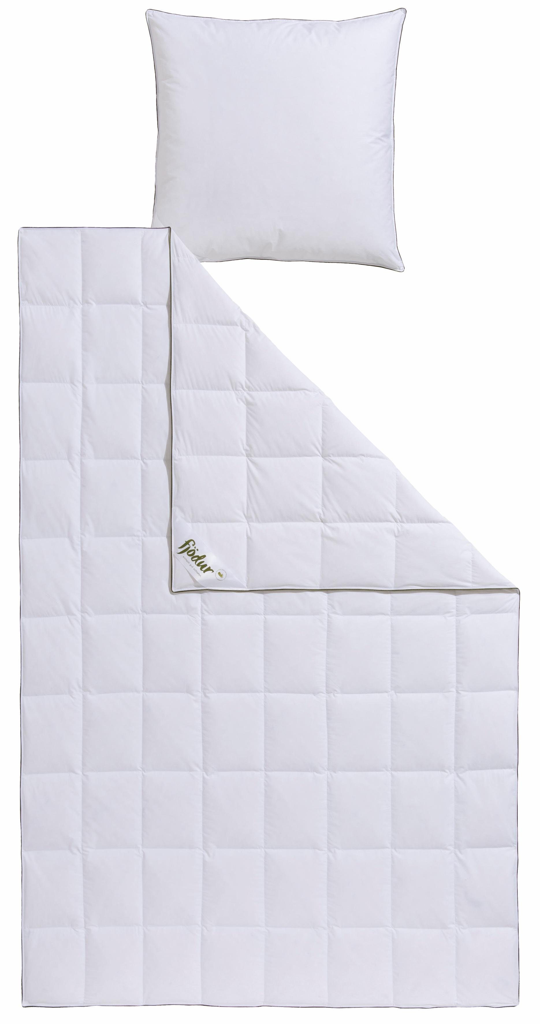 Die Daunenbettdecke und Federkissen »Fabian« im Set von fjödur begeistert mit edler Daunen- und Federfüllung. In Kombination mit dem hochwertigen Bezug punktet sie mit temperatur- und feuchtigkeitsausgleichenden Eigenschaften. Die praktische Kassettensteppung verhindert ein Verrutschen des Innenlebens. Im Lieferumfang ist ein Kopfkissen mit inbegriffen, das mit optimaler Stützfunktion für Kopf und Nacken begeistert. Dadurch wird der Schlafkomfort ideal abgerundet. Bettdecke und Kissen können bei 60 °C in der Waschmaschine gereinigt und anschließend in den Trockner gegeben werden. Das Bettdecken Set ist für Hausstauballergiker geeignet. Die Daunenbettdecke und Federkissen »Fabian« von fjödur ermöglicht mit ihrer edlen Daunenfüllung eine angenehme Nachtruhe.