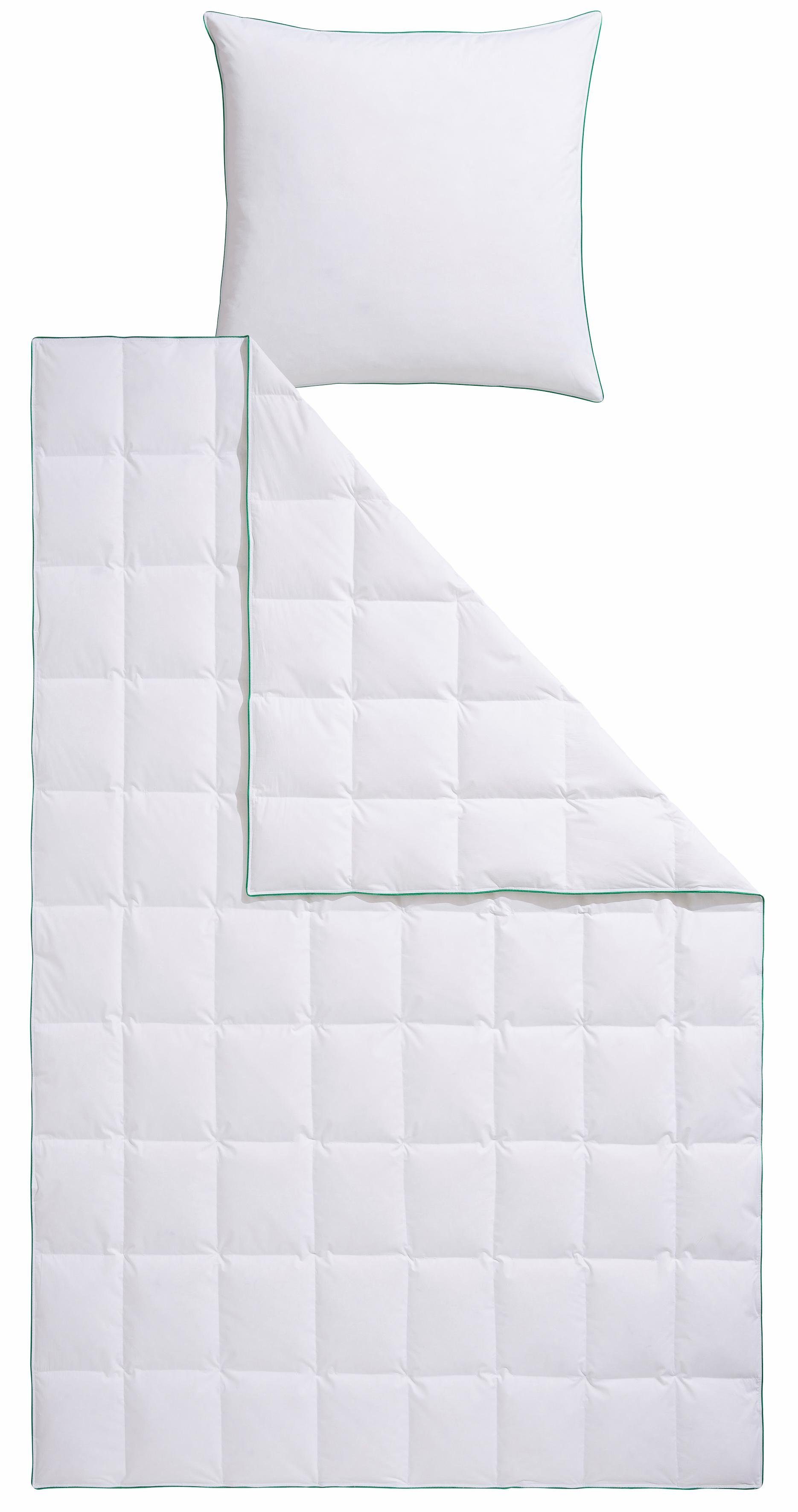 Habe die Daunendecke gleich nach der Lieferung bezogen und benutzt. Am Anfang war ich etwas skeptisch, da die Decke sehr stark geraschelt hatte, wie Papier oder trockenes Laub. Am zweiten Tag war es schon fast weg. War wohl nur, weil sie neu war. Jetzt ist die Decke perfekt. Man friert nicht, aber was für mich sehr wichtig ist, man schwitzt auch nicht. Das Kissen ist auch angenehm weich. Im Großen und Ganzen, trotz des etwas hohen Preises lohnt es sich, diesen Artikel zu kaufen.