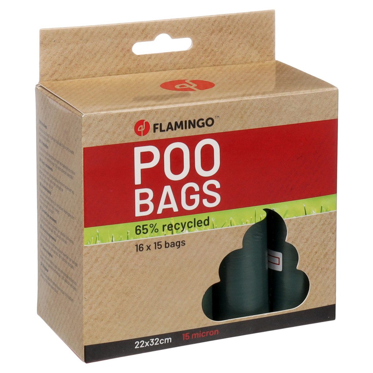 Flamingo stellt diese Beutel aus 65% recyceltem Kunststoff her. Jede Packung enthält 16 Rollen mit jeweils 15 Beuteln, sodass Anwender stets bestens ausgestattet sind.