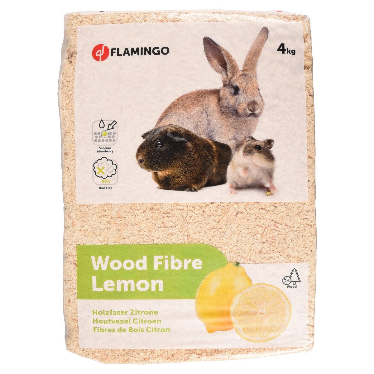 Flamingo Kleintierstreu Holzfaser mit Zitronenduft 4 kg / 56 l