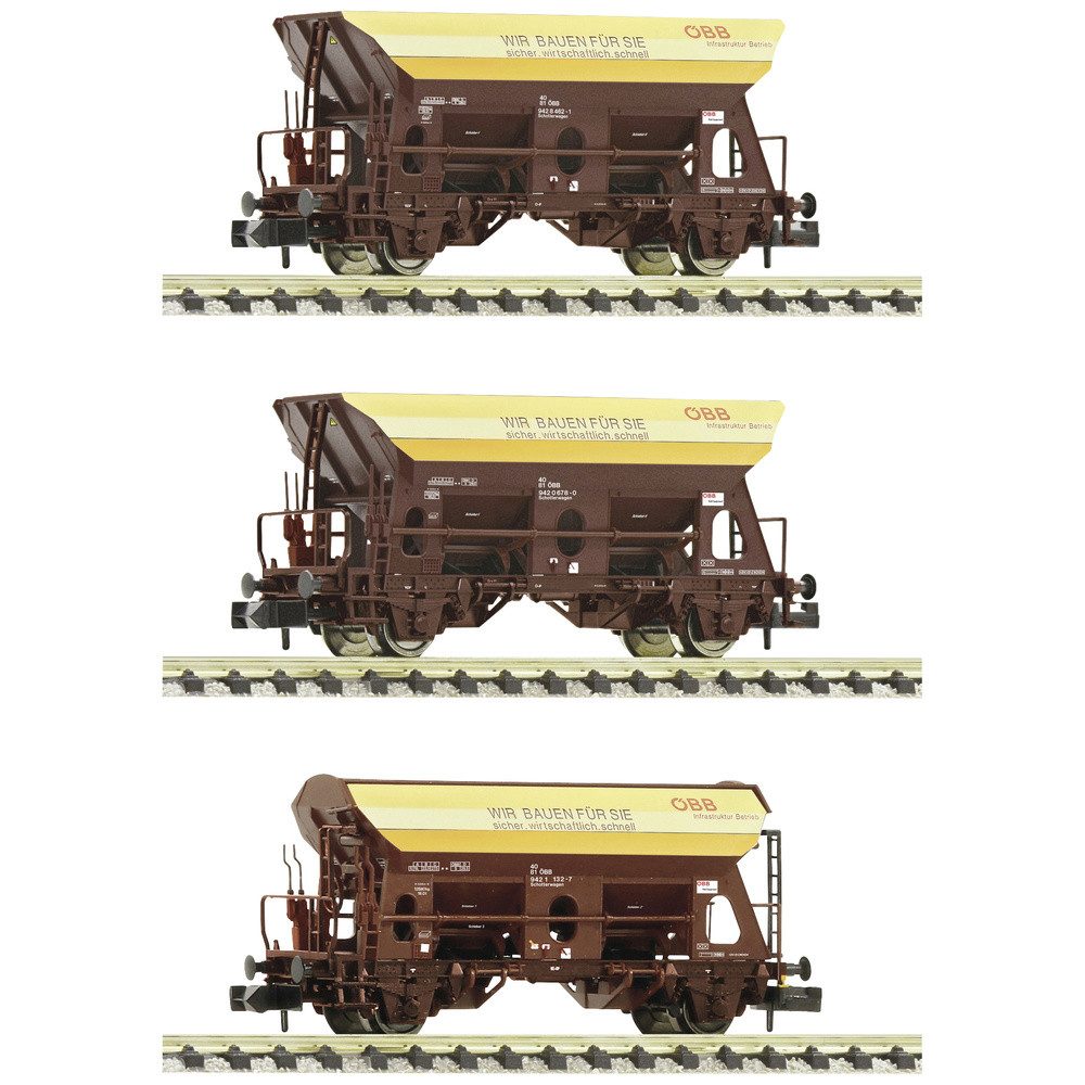 Wagenset mit drei Schotterwagen des Geschäftsbereichs Infrastruktur Betrieb der Österreichischen Bundesbahnen (ÖBB Infrastruktur)