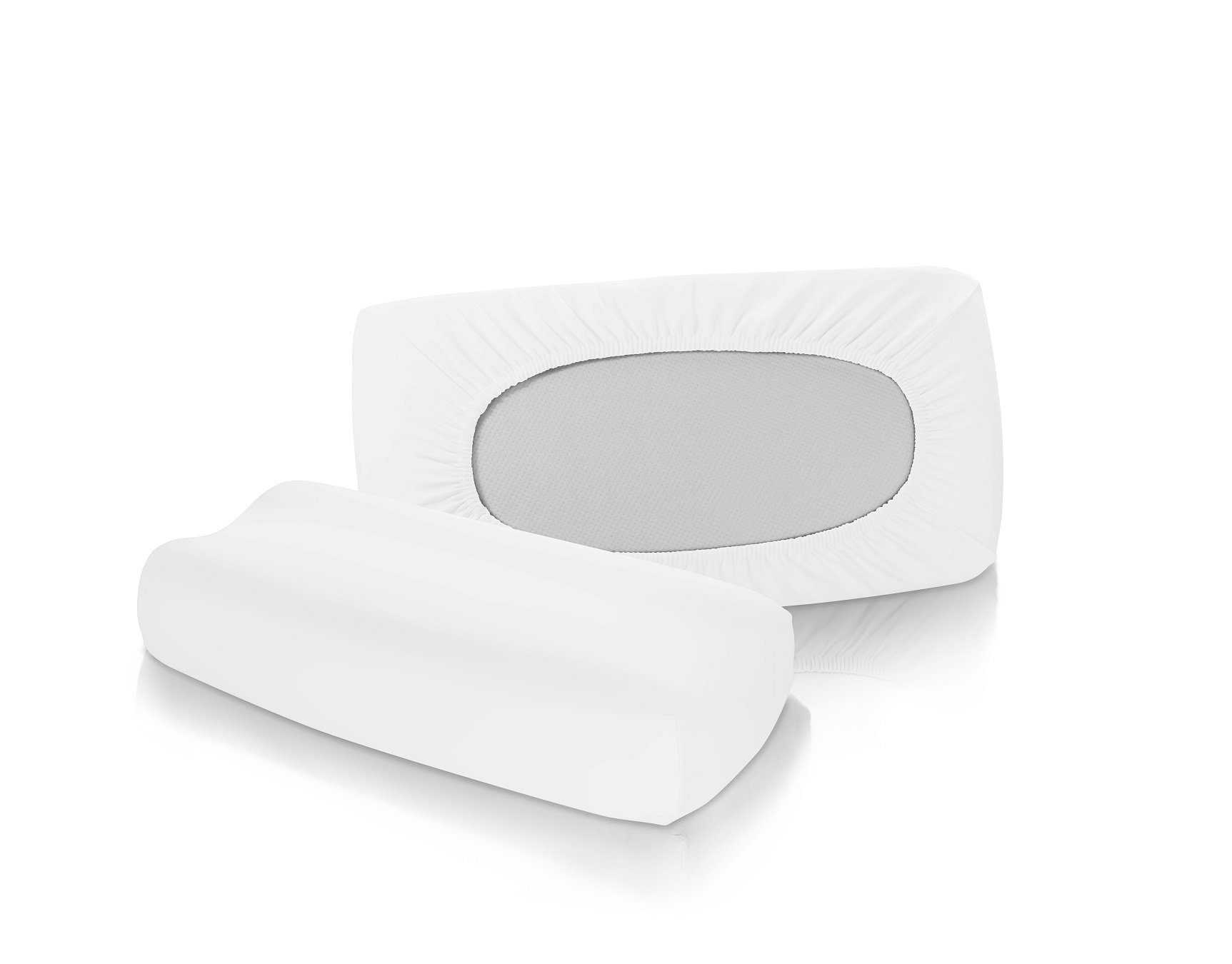 2 Stück Kissenbezüge für Nackenstützkissen von Fleuresse Vital Comfort S-001117 fleuresse vital comfort Nacken-Stützkissenbezüge. Der multifunktionale Jersey Gesundheitskissenbezug mit fleuresse POWER-STRETCH-Funktion aus Mako-Baumwolle mit der Faser LYCRA ® exklusive Qualität für höchste Ansprüche, hochwertiger Jersey aus Mako-Baumwolle 96%, Elastan (LYCRA ®) 4%, faltenfrei durch fleuresse Power-Stretch, Rundumgummi für den perfekten Sitz, bügelfrei, pillingfrei durch supergekämmten Zwirn, atmungsaktiv, waschbar bis 60°, trocknergeeignet. Durch den Elasthan-Anteil und den Rundumgummi passen diese 40x60 Kissenbezüge für alle gängigen Nackenstützkissen: 40x60, 40x70, 40x80, 50x70, 50x80.