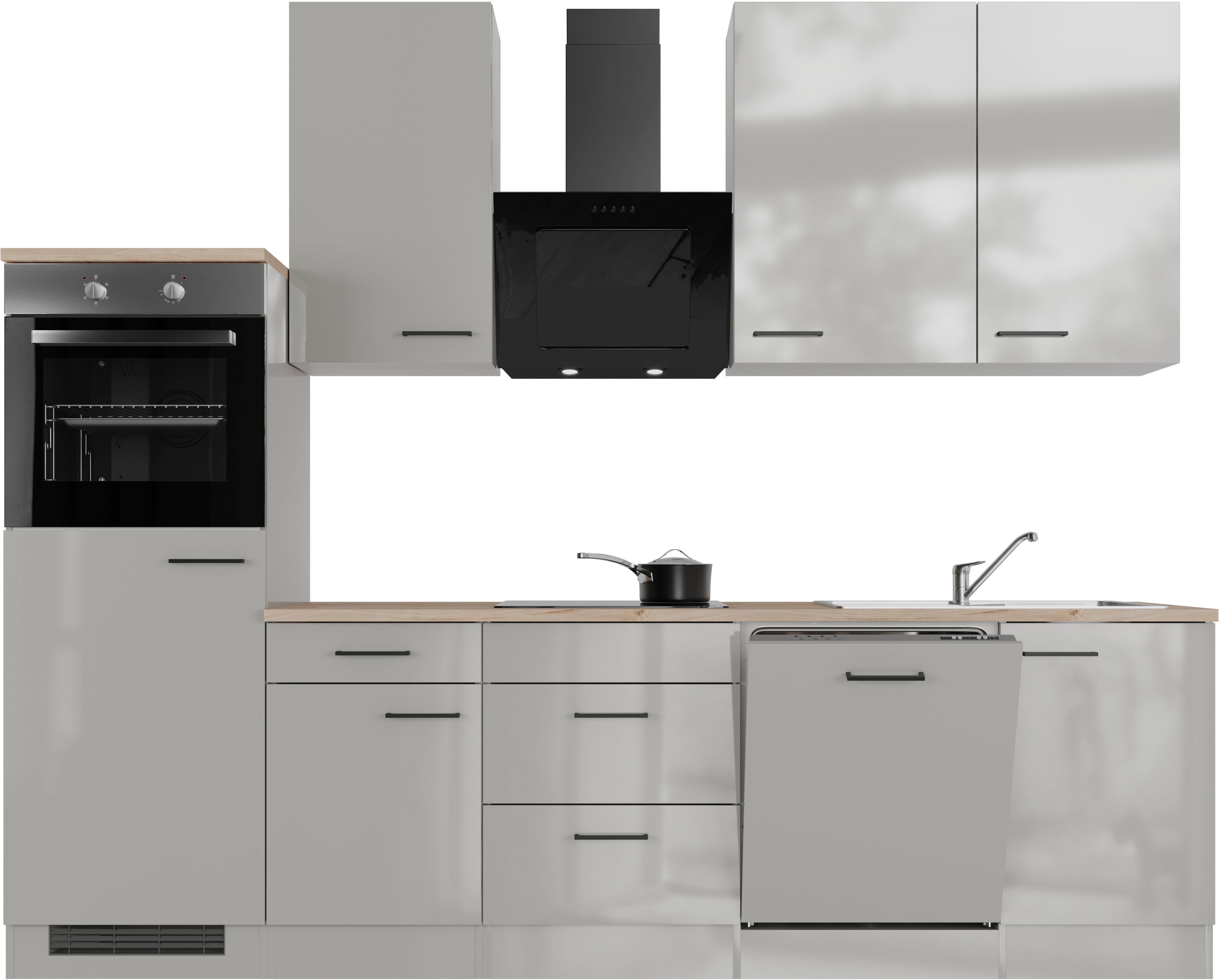 Ausstattung | Durchgehende Arbeitsplatte Einlegeböden höhenverstellbar Laufleisten der Schubkästen aus Metall Metallgriffe Seitenverkehrt stellbar Sockelhöhe nicht verstellbar ohne E-Geräte |