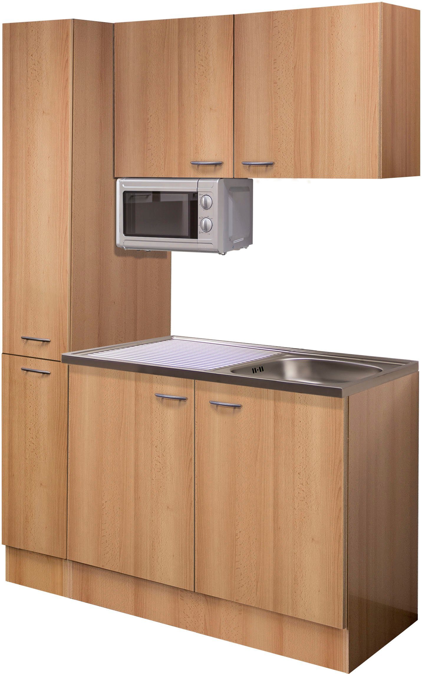 Ausstattung | Einlegeböden höhenverstellbar Metallgriffe Seitenverkehrt stellbar Sockelhöhe nicht verstellbar inkl. Edelstahl-Auflagespüle, mit Abtropffläche mit E-Geräten weitere Informationen zu Elektrogeräten: siehe Спецификации товара (на немецком) |