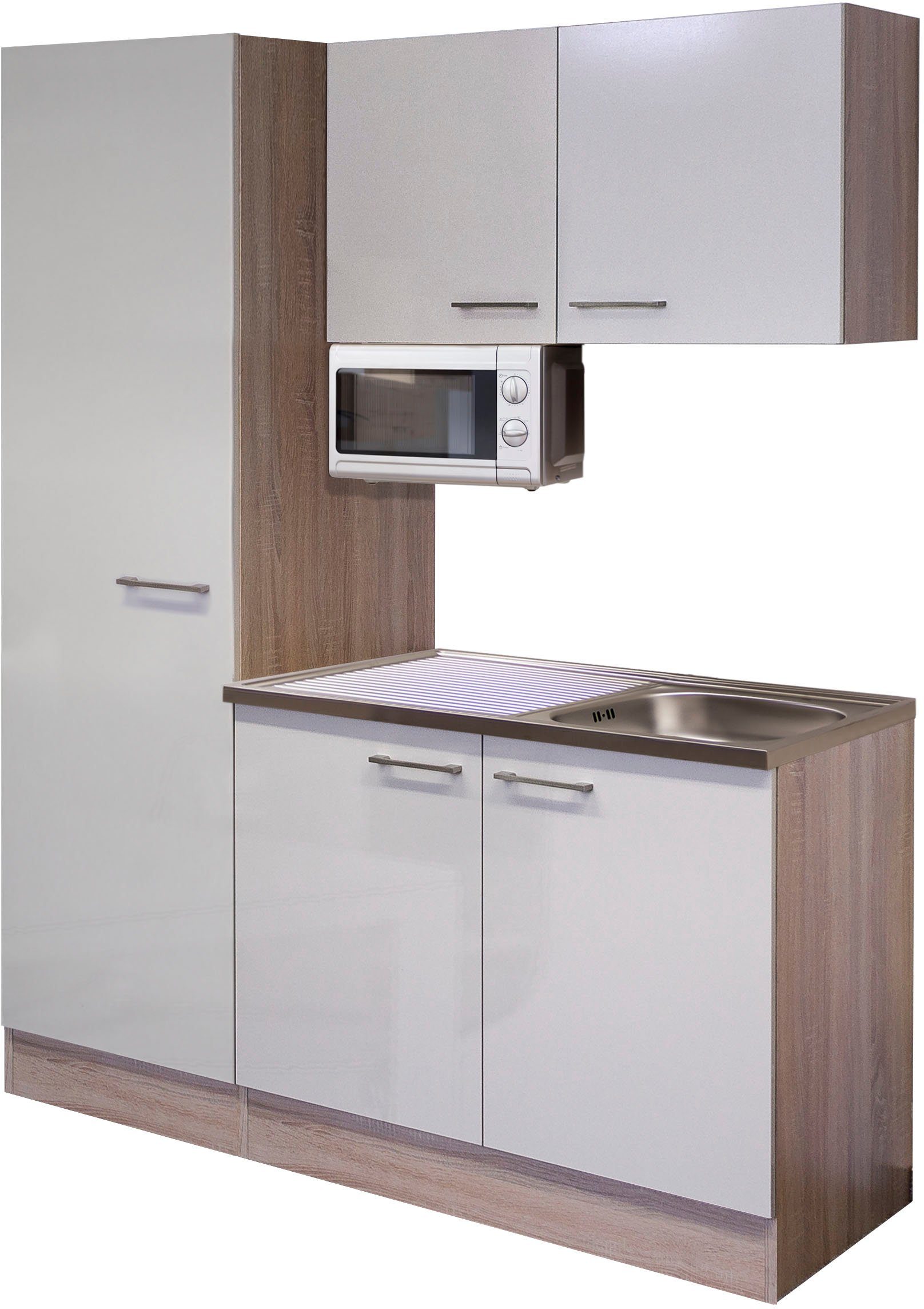 Ausstattung | Einlegeböden höhenverstellbar Seitenverkehrt stellbar Sockelhöhe nicht verstellbar inkl. Edelstahl-Auflagespüle, mit Abtropffläche mit E-Geräten weitere Informationen zu Elektrogeräten: siehe Спецификации товара (на немецком) |