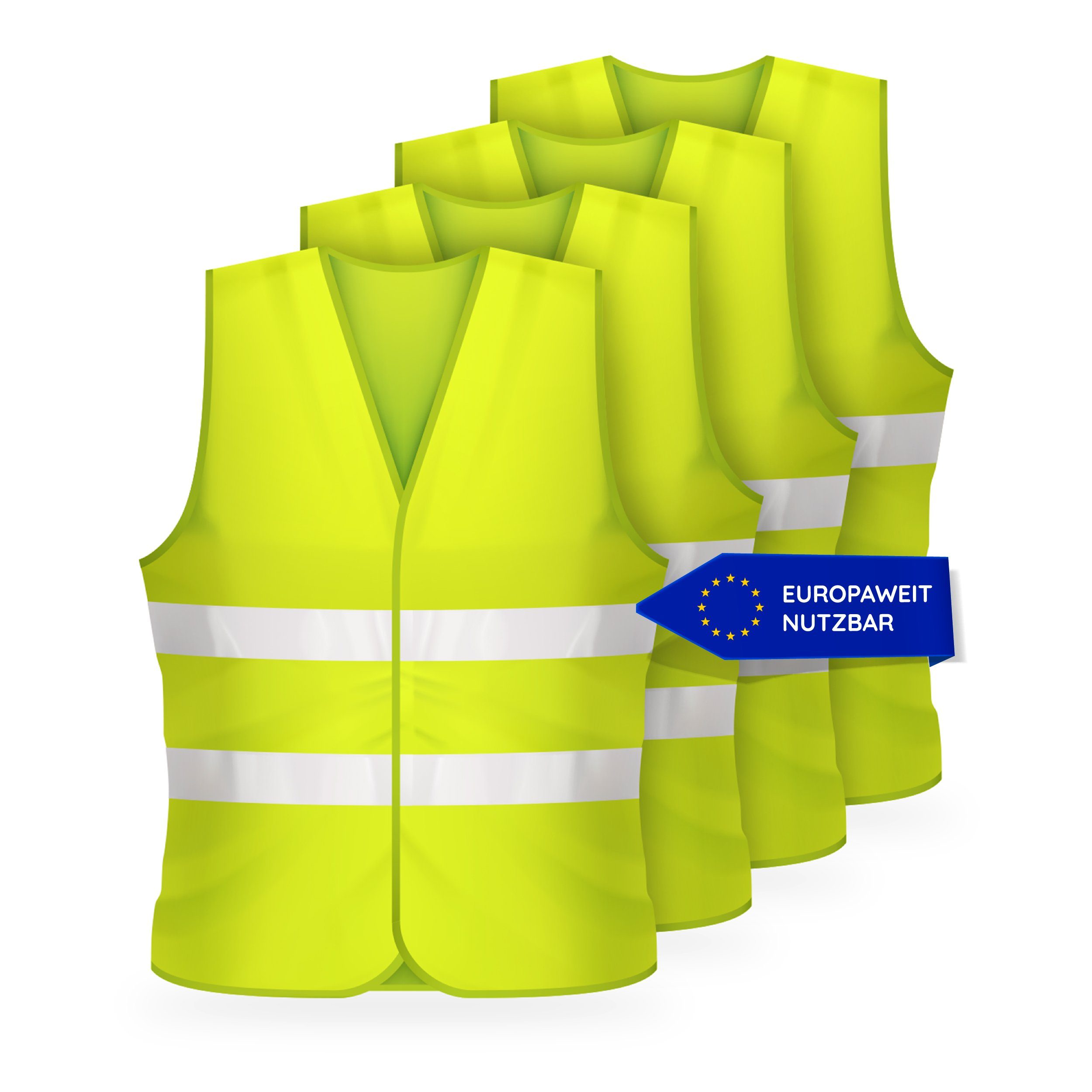 Damit die Warnwesten im KFZ / Auto gut verstaut werden können, sind sie extrem klein & kompakt verpackt. Все 4 Westen befinden sich gebündelt in einer Tüte. Zusätzlich ist jede Warnweste nochmals einzeln verpackt. So lassen sich die Warnwesten sicher in Ihrem Auto / KFZ mitführen. Auch für Motorradfahrer sind unsere Westen sehr gut geeignet und bequem mitzuführen.