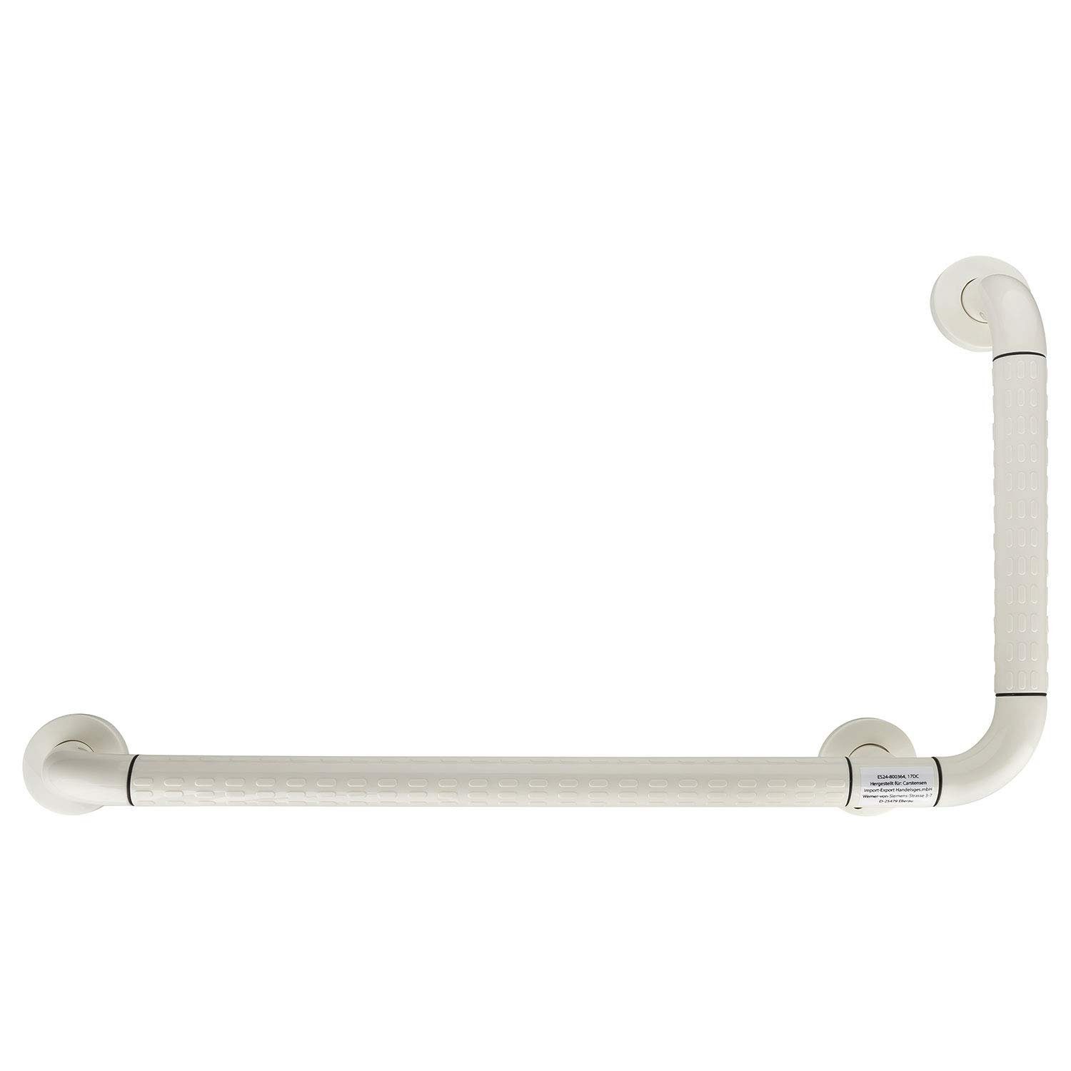 Der Eck-Wandhaltegriff bietet älteren und pflegebedürftigen Menschen einen sicheren Halt beim Ein- oder Aussteigen aus der Badewanne, Duschwanne oder auf der Toilette. Die strukturierte Oberfläche sorgt für zusätzliche Sicherheit und Stabilität. Die Flansche des Haltegriffs verdecken die Befestigungsschrauben und sorgen für ein ansprechendes Design. Der Griff besteht aus einem robustem Stahlrohr und die Oberfläche aus einem leicht zu reinigendem ABS Kunststoff.
