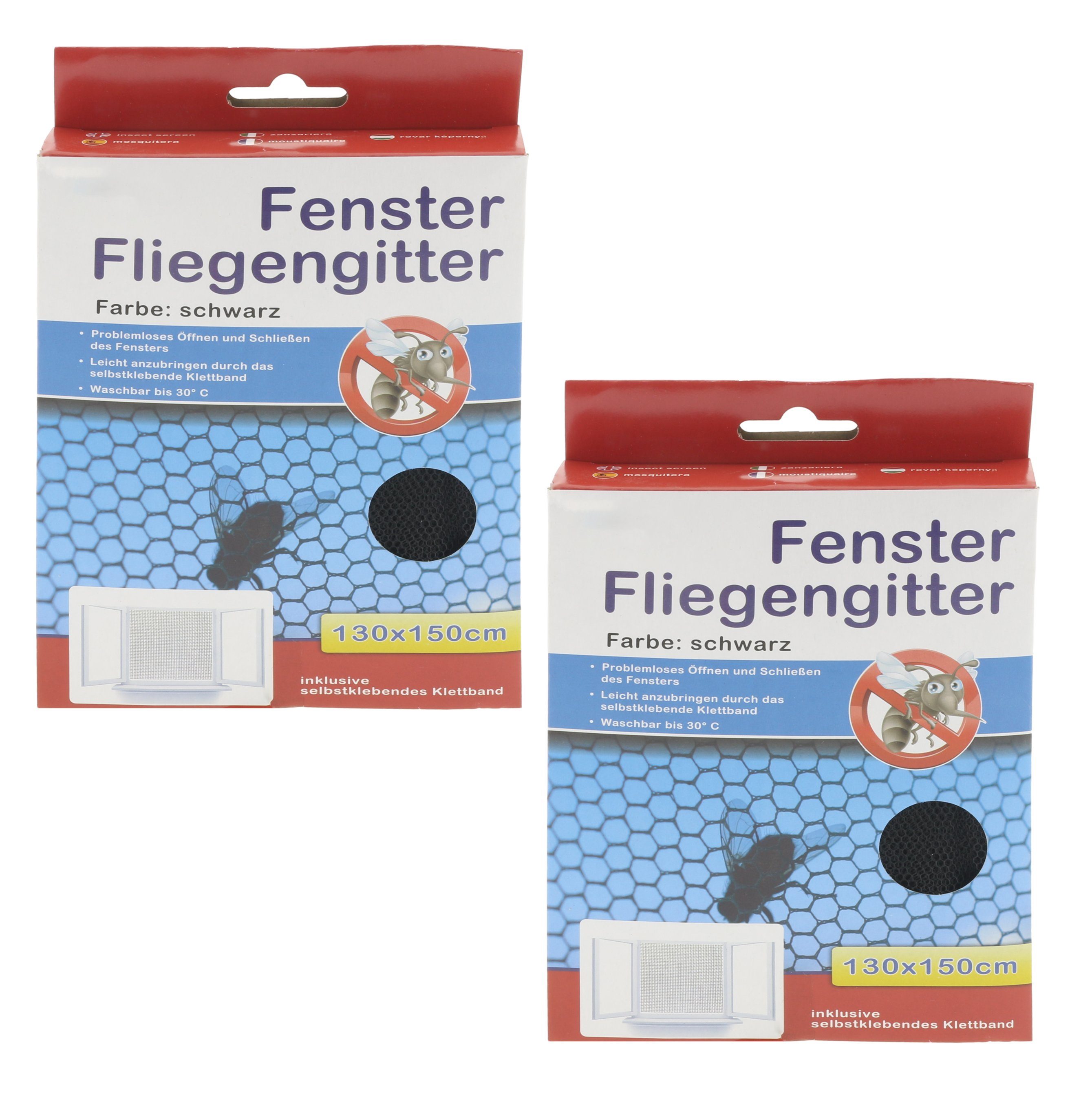 2 x Fliegengitter für Fenster bis 130x150cm inkl. selbstklebendes Klettband