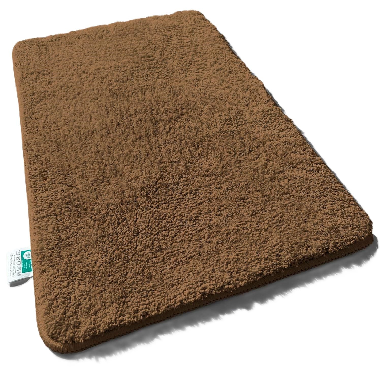 Die rutschfeste Latex-Beschichtung auf der Rückseite der Mikrofaser Badematte sorgt für festen Halt auf Fliesen oder anderen glatten Untergründen. Dadurch eignet sich der Badteppich rutschfest auch besonders gut für Haushalte mit Kindern oder Senioren. Zudem ist die Matte für Fußbodenheizungen geeignet.