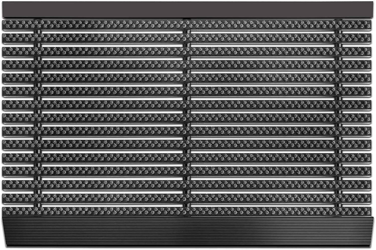 Die Bürstenreihen sind in einem edel anmutenden schwarzen Rahmen aus robustem PVC angeordnet. Dank des hohen Gewichts und Gumminoppen an der Unterseite bleibt die Türmatte stets an ihrem Platz liegen und verrutscht auch bei häufiger Nutzung nicht. Das hochwertige Material trotzt nicht nur starker mechanischer Beanspruchung, sondern auch dem Wetter. So kann die Fußmatte innen genauso wie außen genutzt werden, im privaten ebenso wie im gewerblichen Bereich.