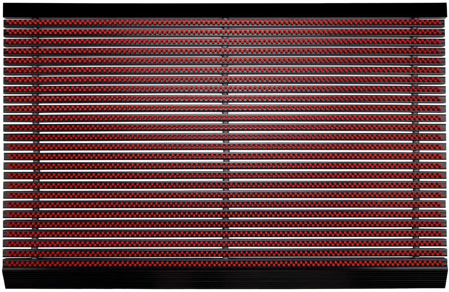 Die Bürstenreihen sind in einem edel anmutenden schwarzen Rahmen aus robustem PVC angeordnet. Dank des hohen Gewichts und Gumminoppen an der Unterseite bleibt die Türmatte stets an ihrem Platz liegen und verrutscht auch bei häufiger Nutzung nicht. Das hochwertige Material trotzt nicht nur starker mechanischer Beanspruchung, sondern auch dem Wetter. So kann die Fußmatte innen genauso wie außen genutzt werden, im privaten ebenso wie im gewerblichen Bereich.