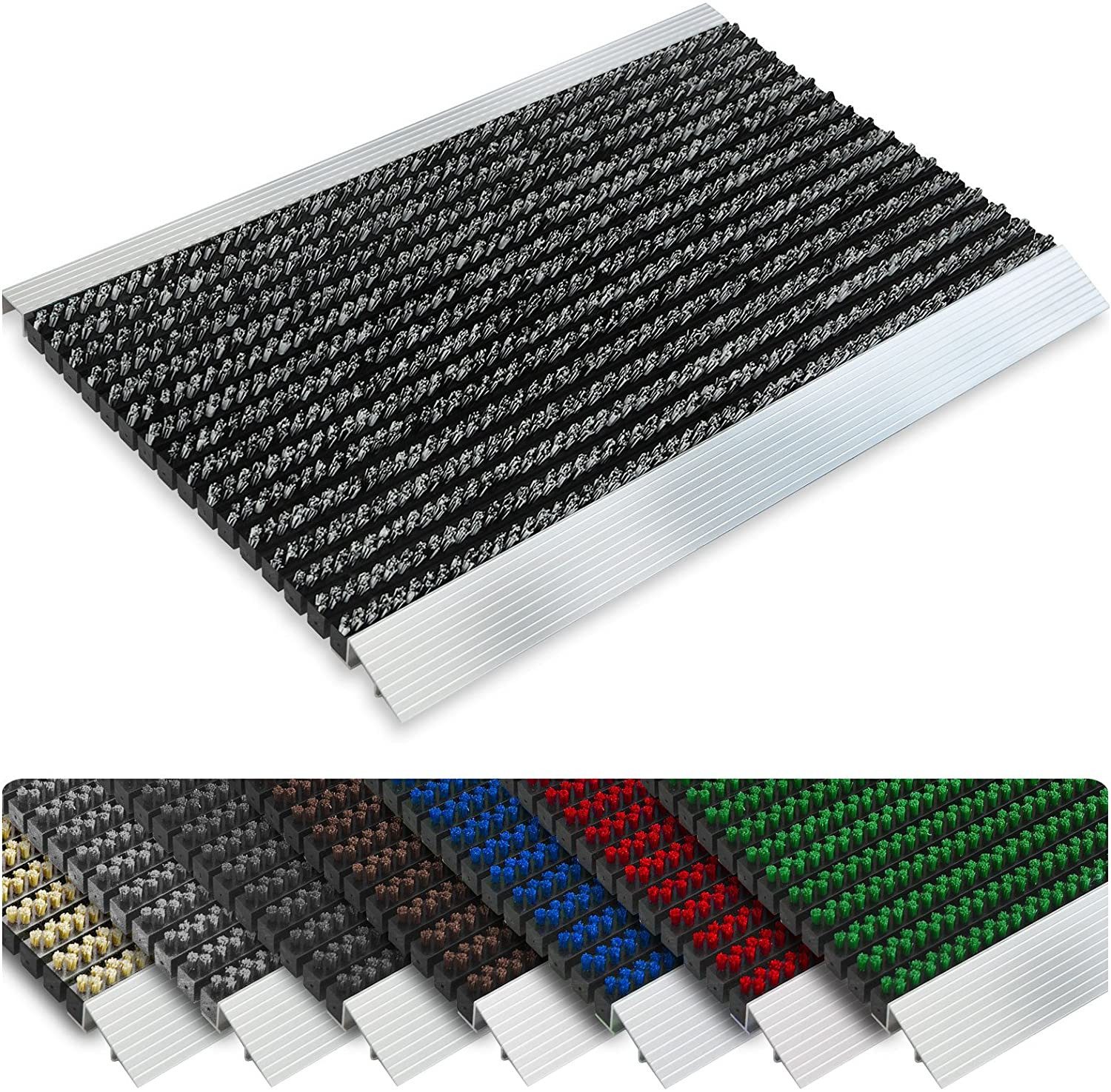 Die rechteckige Fussmatte Profi Brush ist ein treuer Begleiter und Helfer in jedem Eingangsbereich. Erhältlich in verschiedenen Farb- und Größenausführungen ist diese Fussmatte für jeden Eingangsbereich geeignet. Die Fussmatte besteht aus einer Alu- Anlaufkante in Silber. Die Abschlusskante auf der Hinterseite bildet einen sauberen Abschluss der Türmatte - damit kann sie passgenau am Türrahmen angelegt werden.
